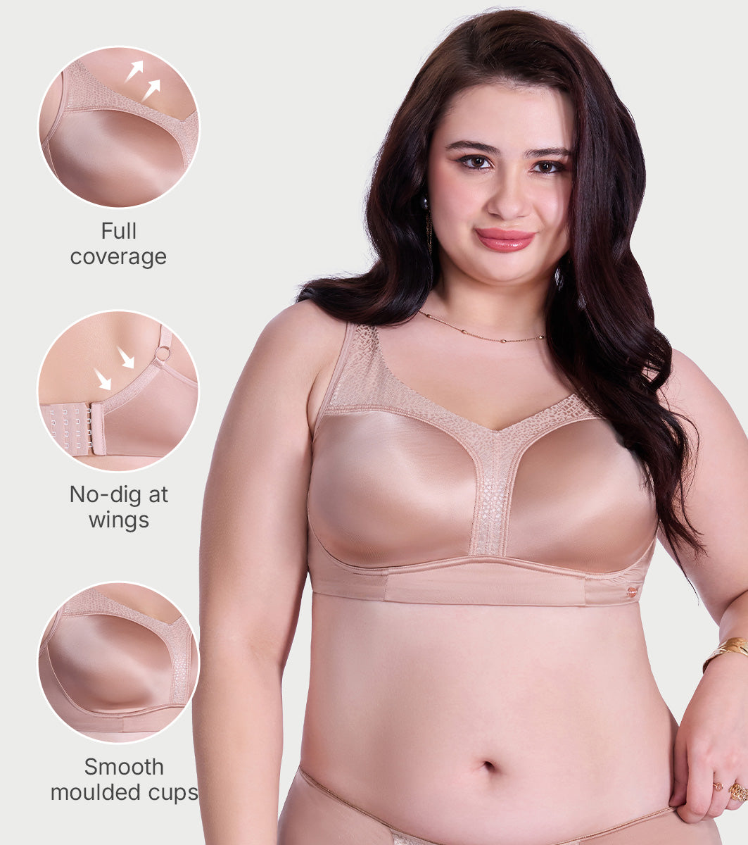 Enamor Full Figure Satin Minimizer Bra - Non-Padded, Non-Wired, High Coverage - F148 (Rose Skin)