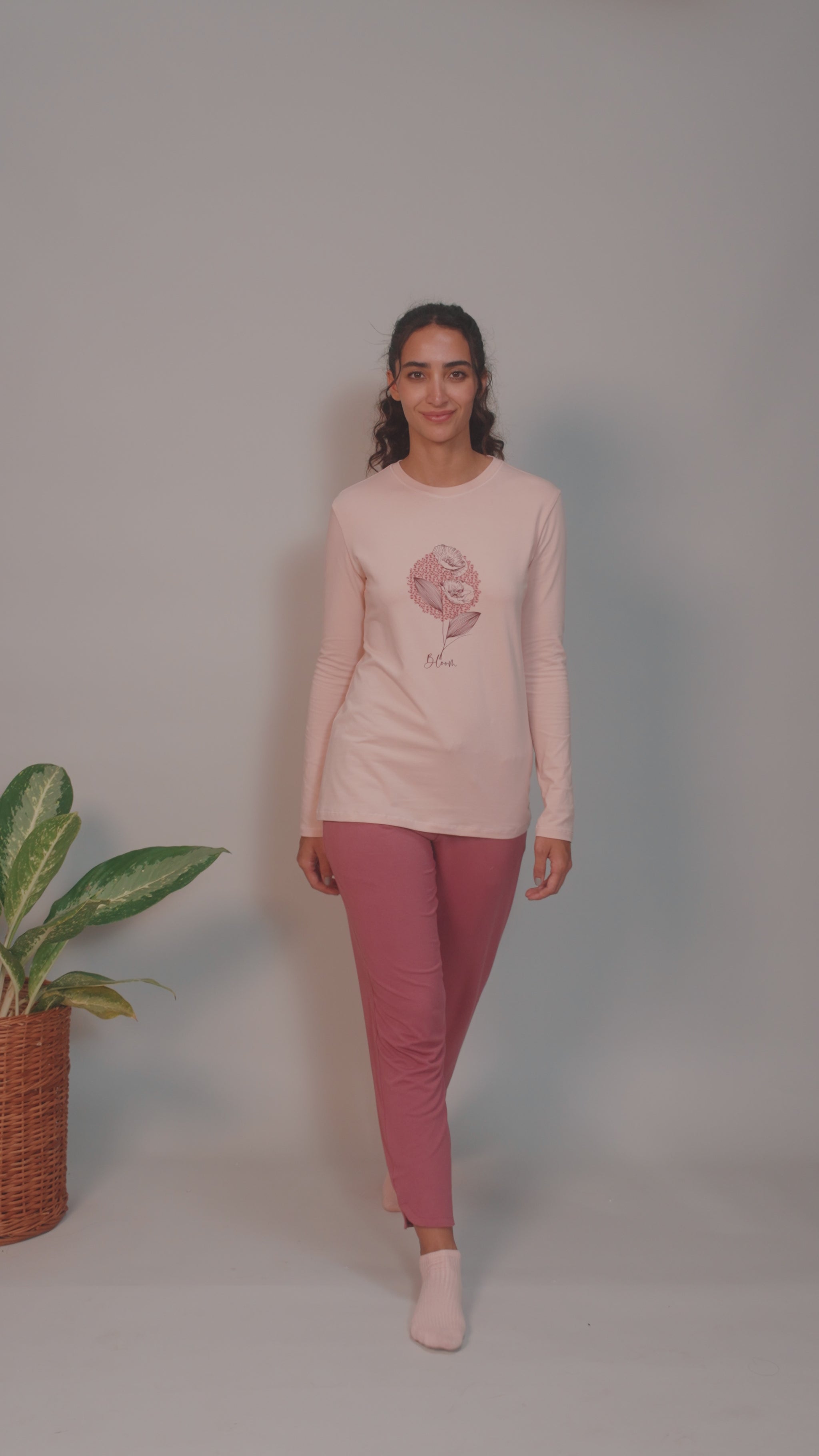 Enamor Full Sleeve Crew Neck Regular Length Pull On Basic Crew T-Shirt For Women - Typographic Print, Soft and Breathable Stretch Cotton - E157 (Lavendula Nature Lover Graphic)