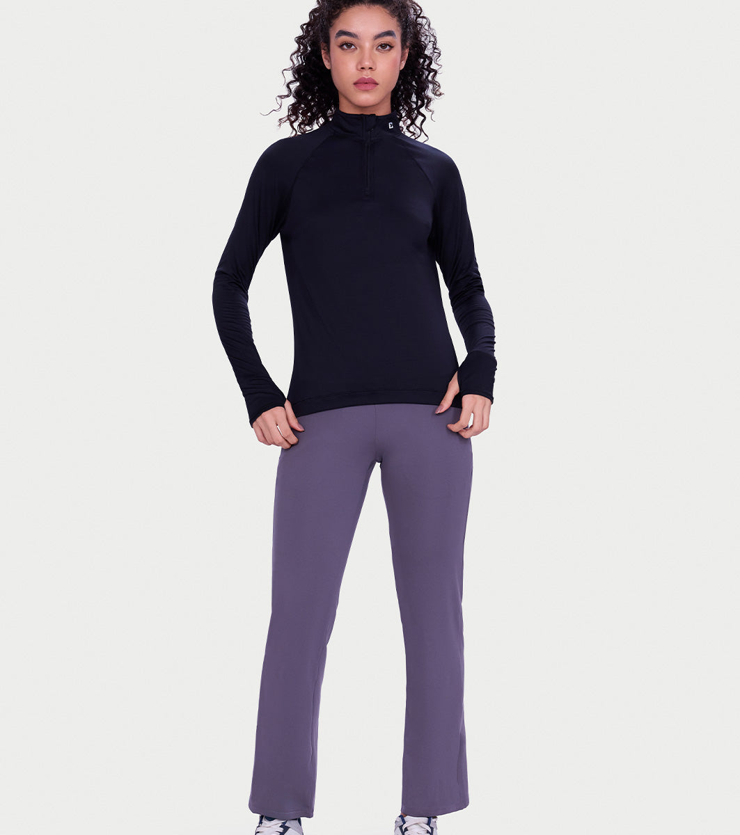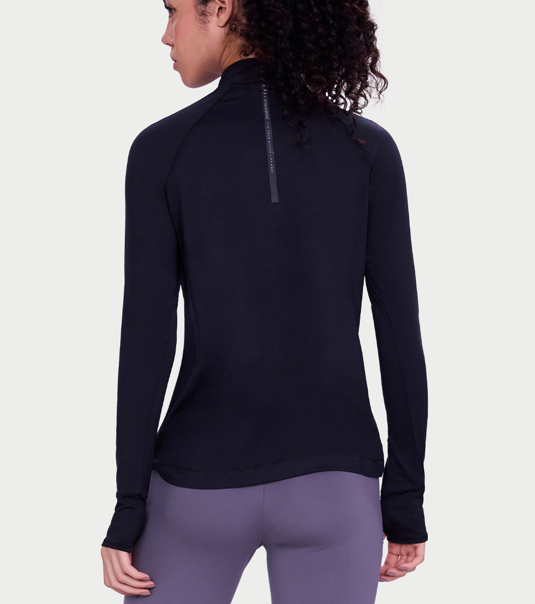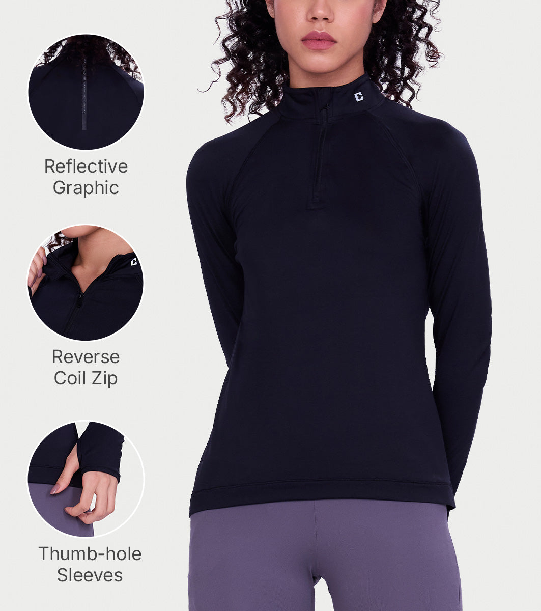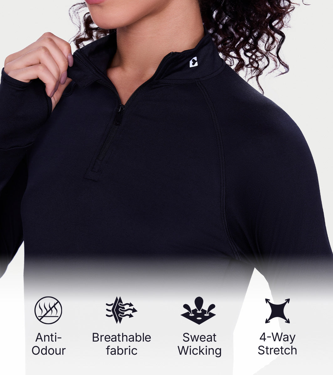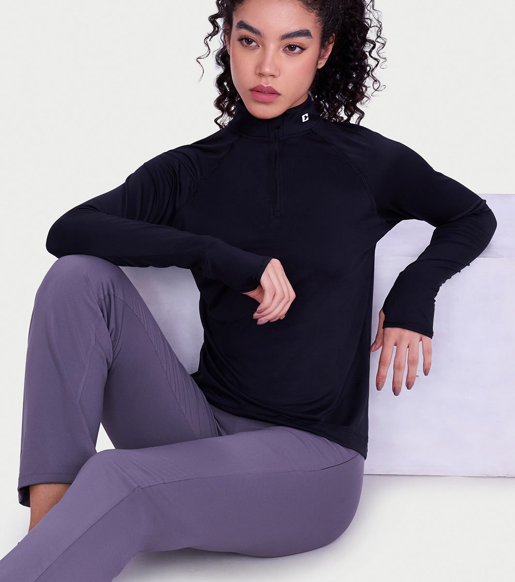 Enamor Full Sleeve High Neck Medium Length Pull on Dry Fit T-Shirt For Women - Slim Fit - A310 (Jet Black)