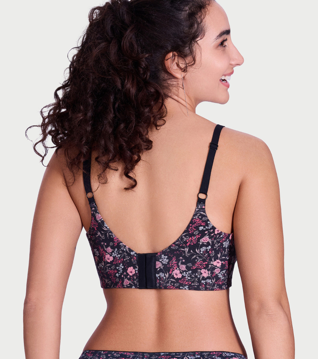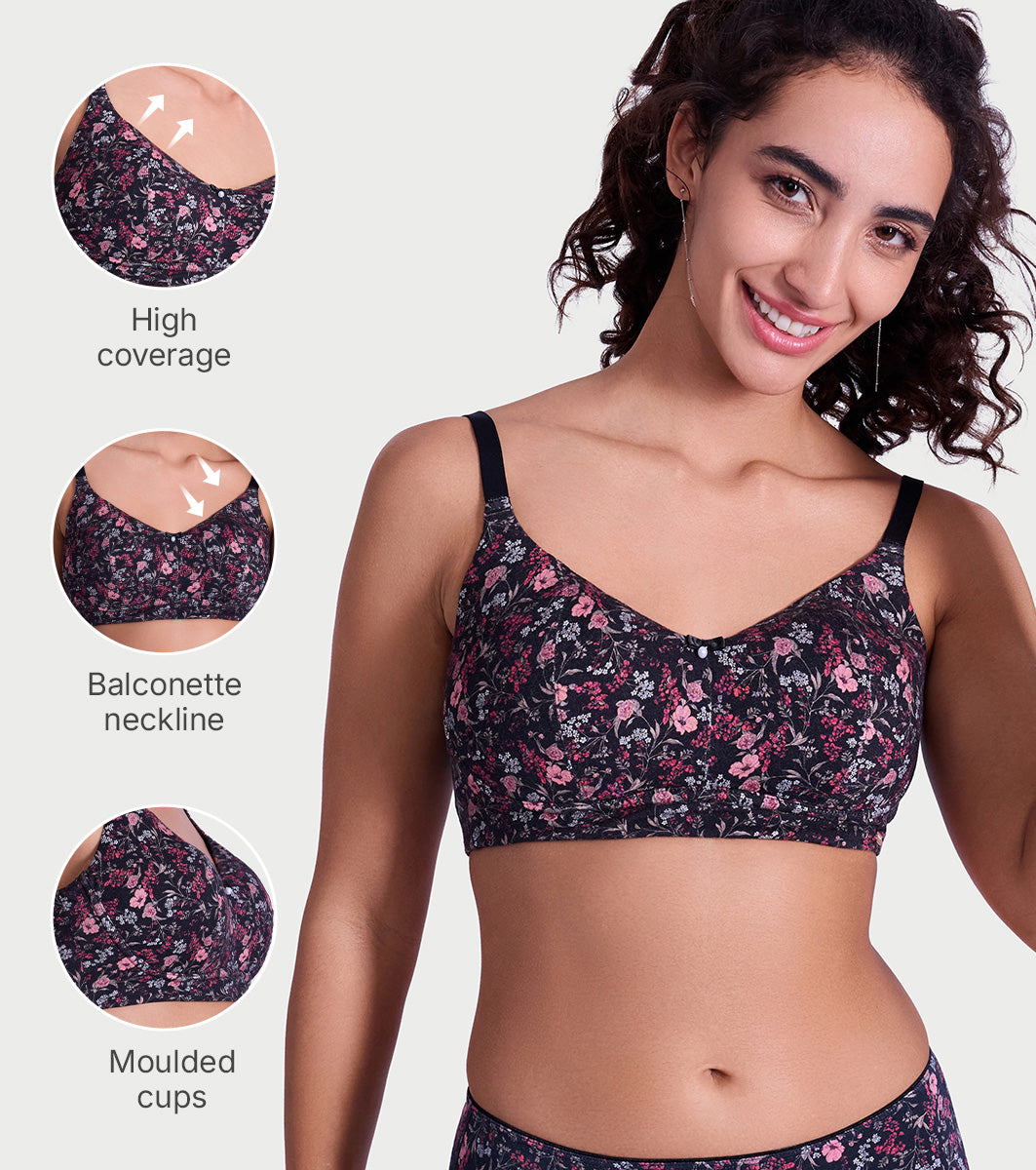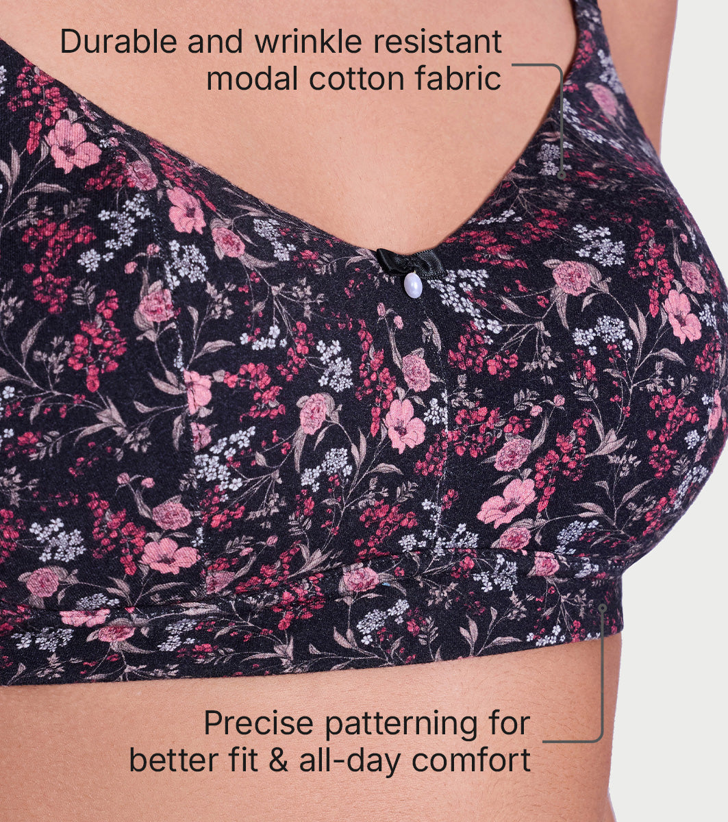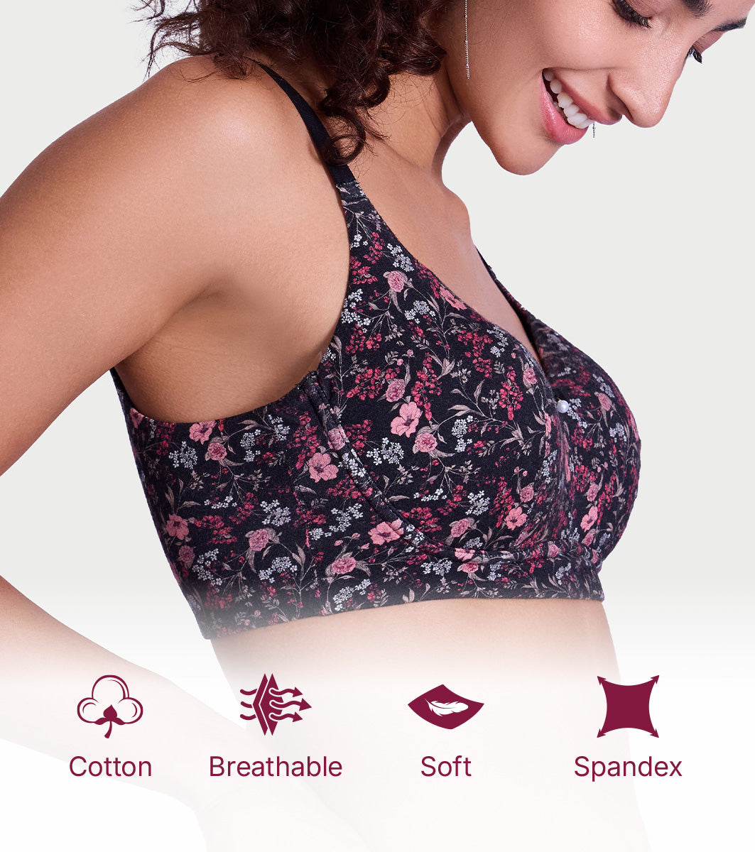 Enamor Full Support Modal T-Shirt Bra - Padded, Non-Wired, Full Coverage - A177 (Black Bouquet Print)