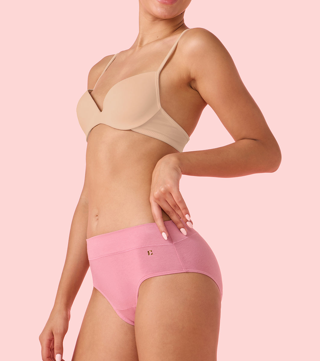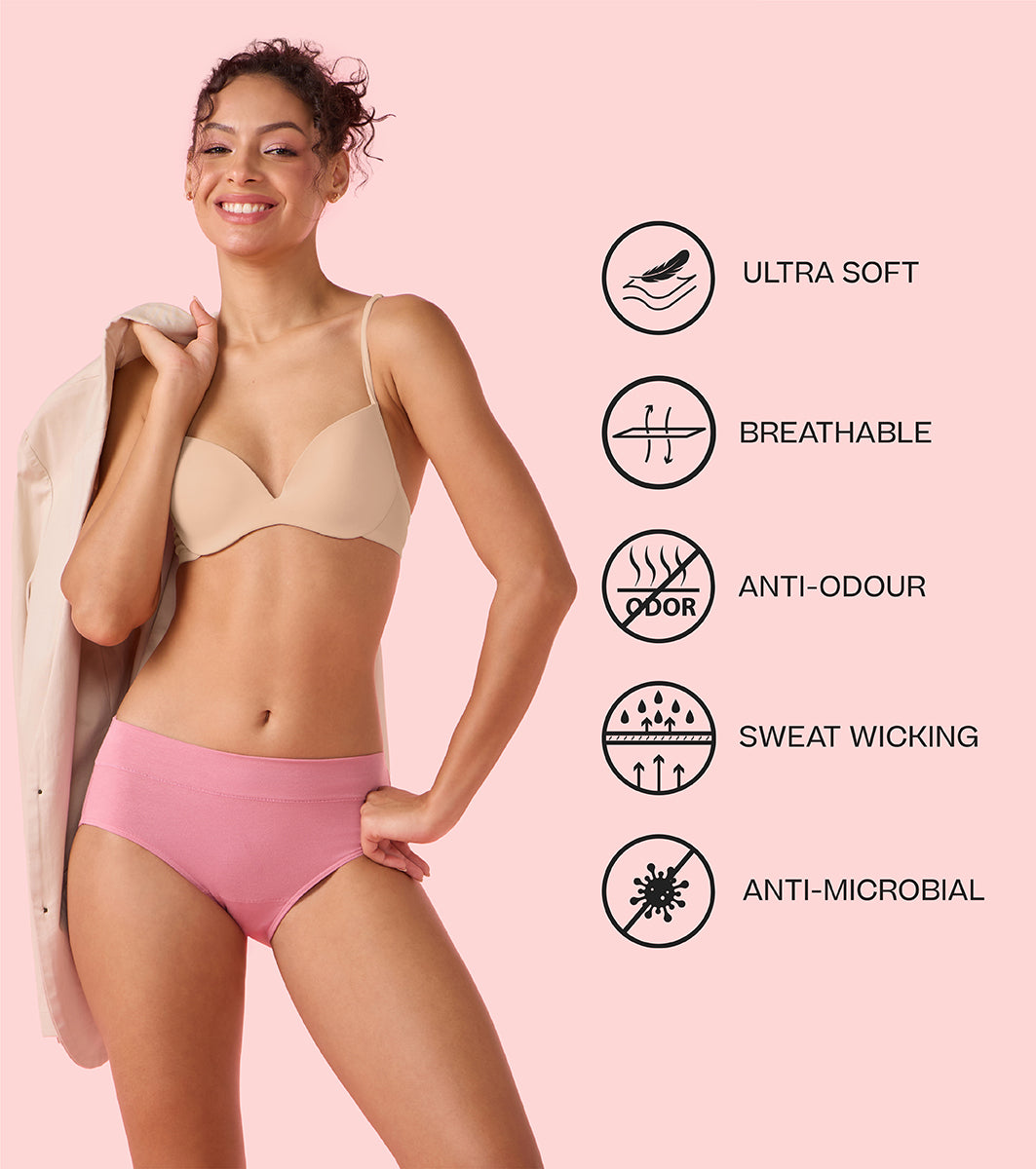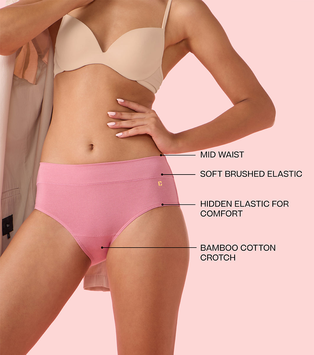 Enamor Innovations Bamboo Bliss, Anti Rash, All Day Comfort, Mid Waist Brief Panty for Women - Super Soft, Naturally Absorbent, Antimicrobial with Stain release, Inner Elastic, Full Coverage- IP01 (Rose Blush)