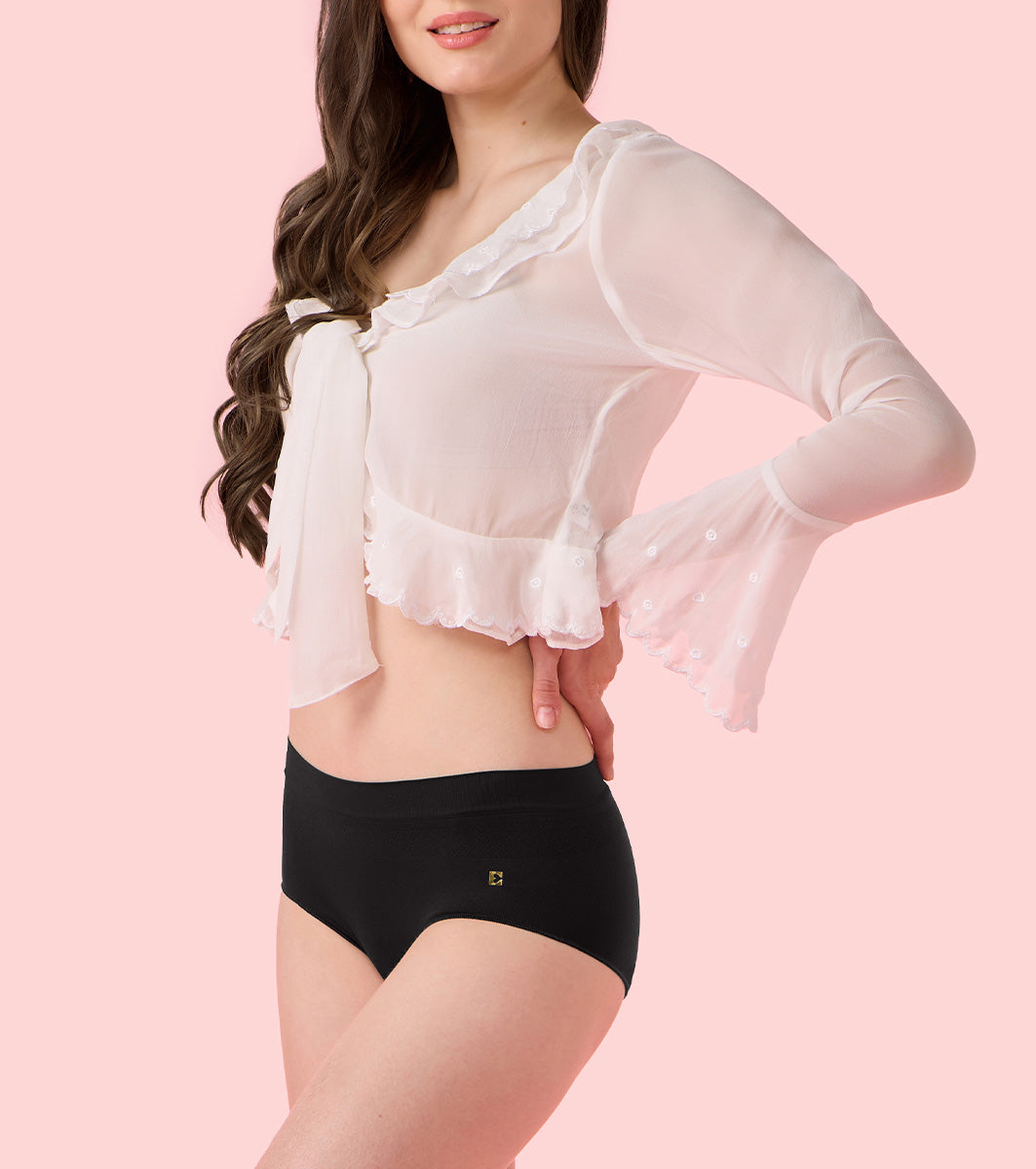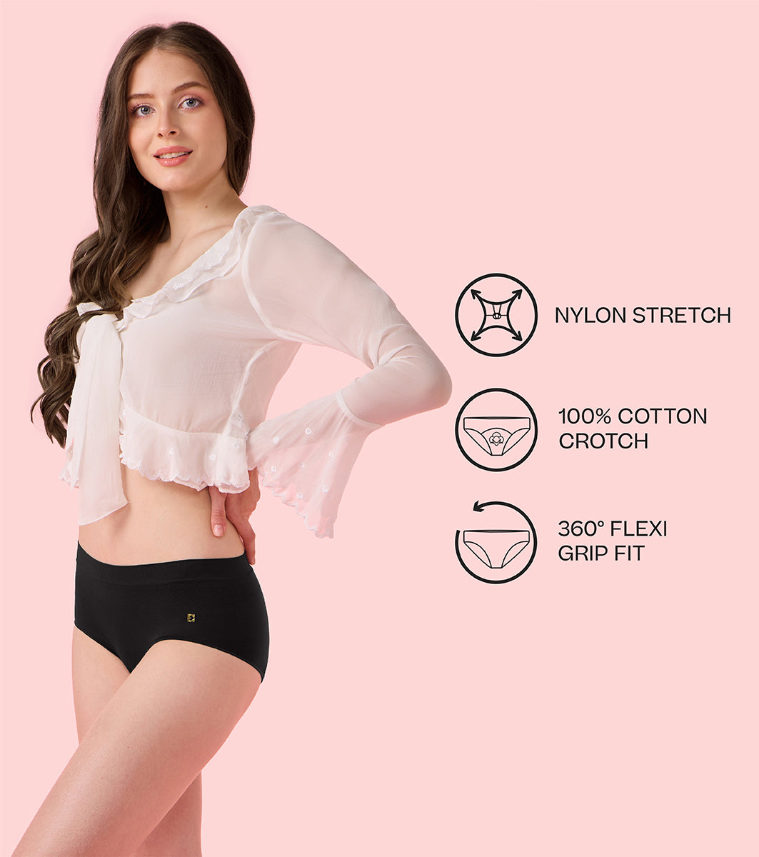 Enamor Innovations Flexi Free, Comfy Essentials, No Visible Panty Lines, All Day Comfort, Mid Waist Brief Panty for Women - Regular Coverage - IP37 (Jet Black)