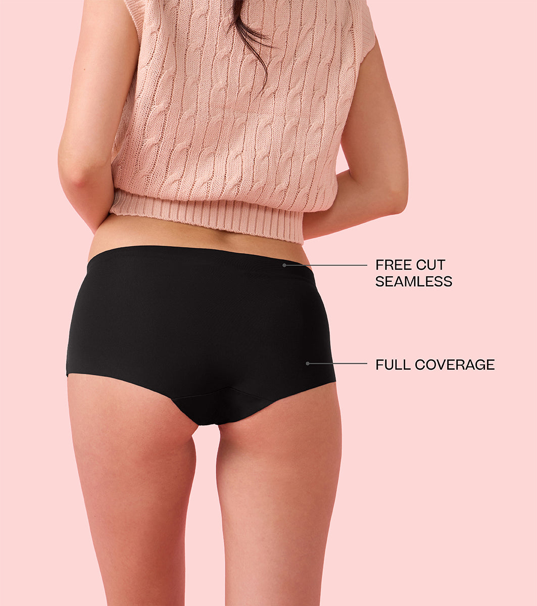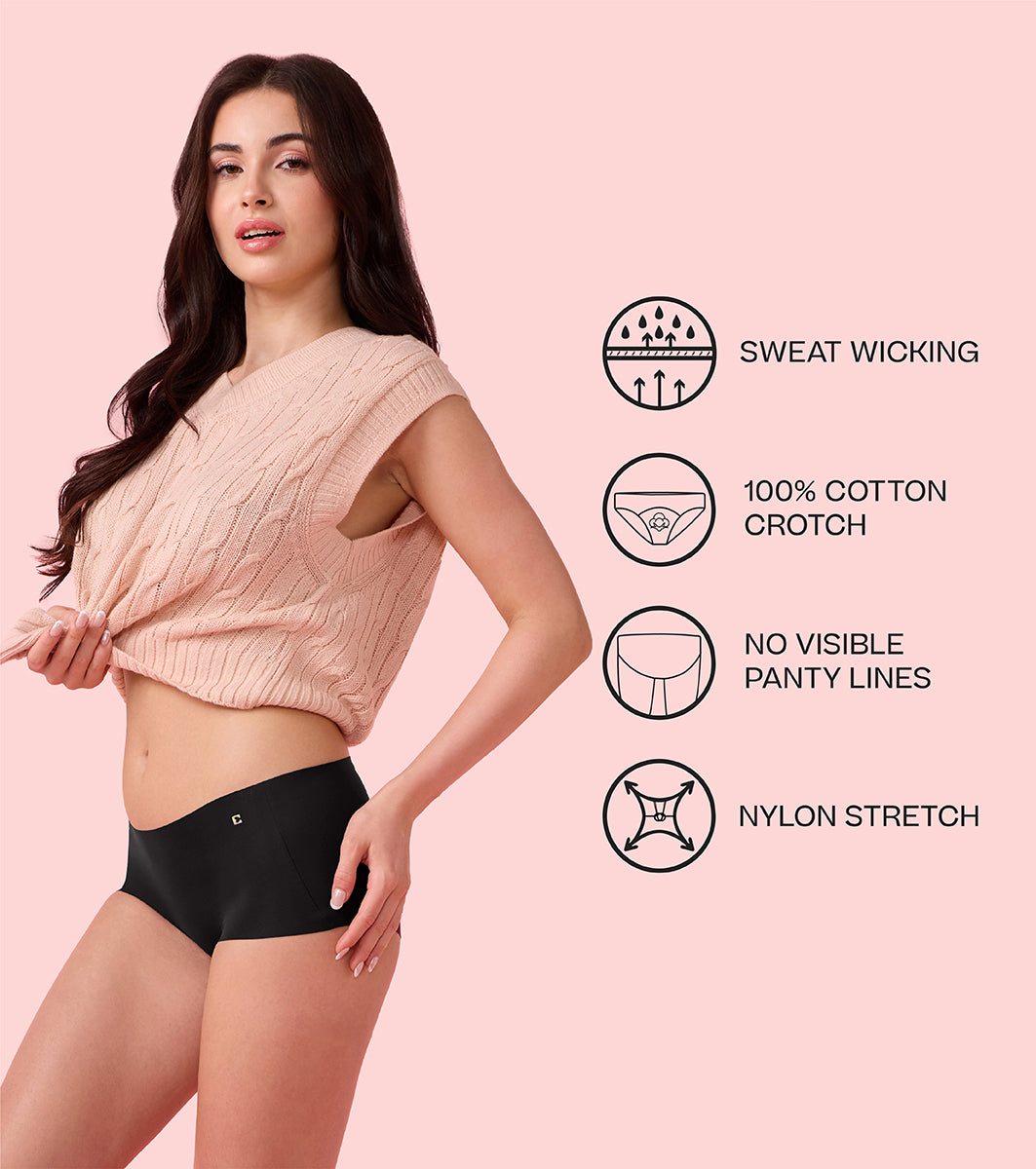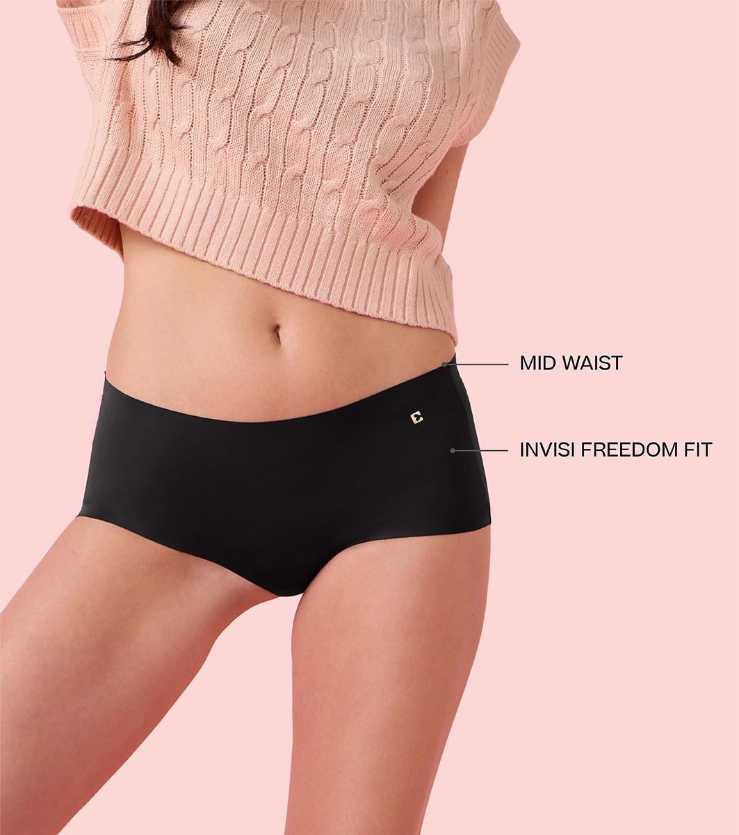 Enamor Innovations Invisi, All Day Comfort, Mid Waist Boyshorts Panty for Women - No Visible Panty Lines, Breathable, Sweat wicking, Free Cut, Full Coverage - PS40 (Jet Black)