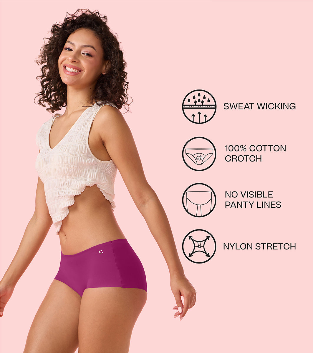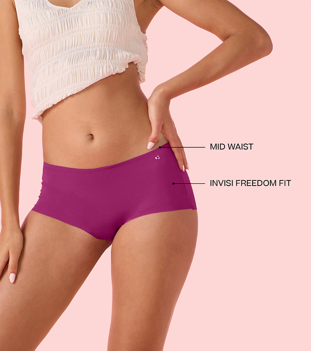 Enamor PS40 Innovations Invisi, All Day Comfort, Mid Waist Boyshorts Panty for Women - No Visible Panty Lines, Breathable, Sweat wicking, Free Cut, Full Coverage - Pack of 1 (Queen Pink)