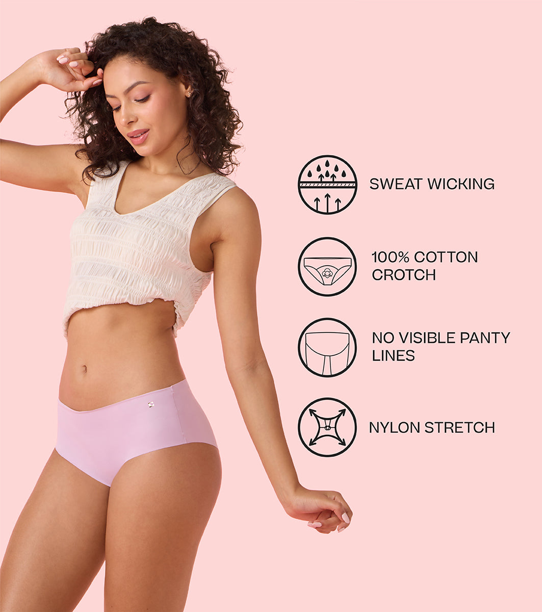 Enamor Innovations Invisi, All Day Comfort, Mid Waist Hipster Panty for Women - No Visible Panty Lines, Sweat wicking, Free Cut, Full Coverage - PH40 (Fair Orchid)