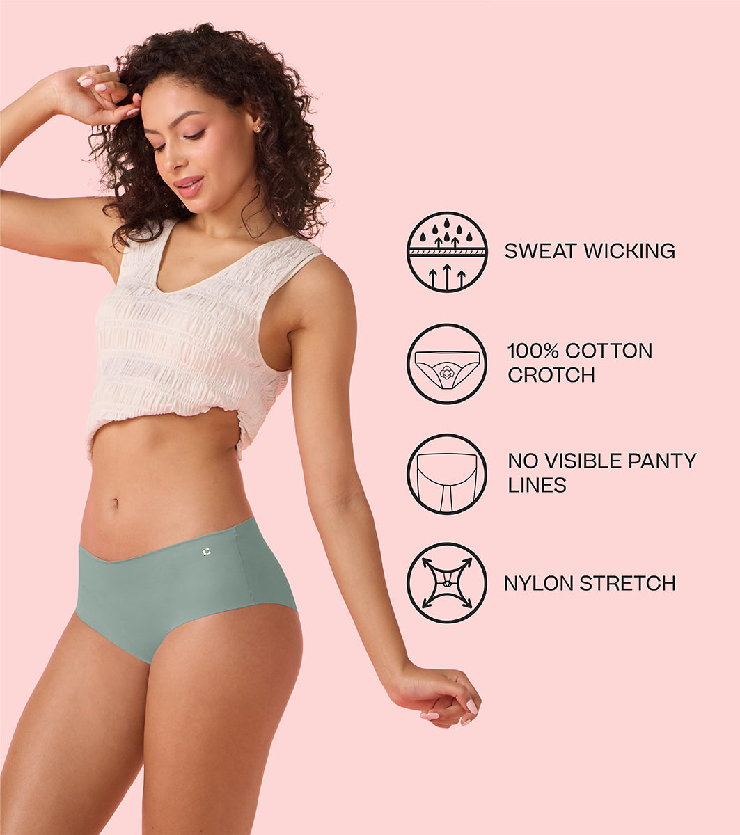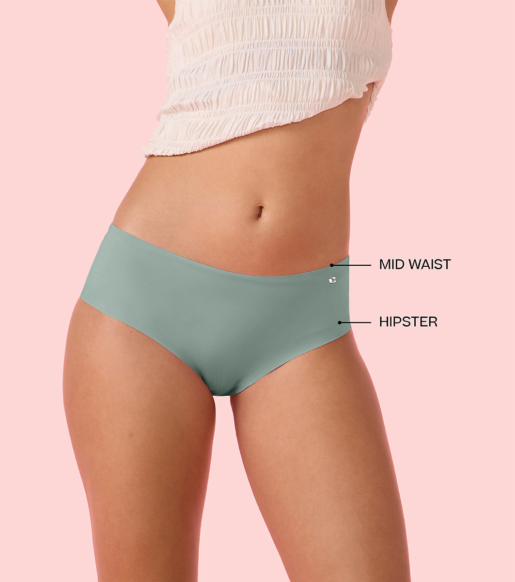 Enamor Innovations Invisi, All Day Comfort, Mid Waist Hipster Panty for Women - No Visible Panty Lines, Sweat wicking, Free Cut, Full Coverage - PH40 (Jadeite)