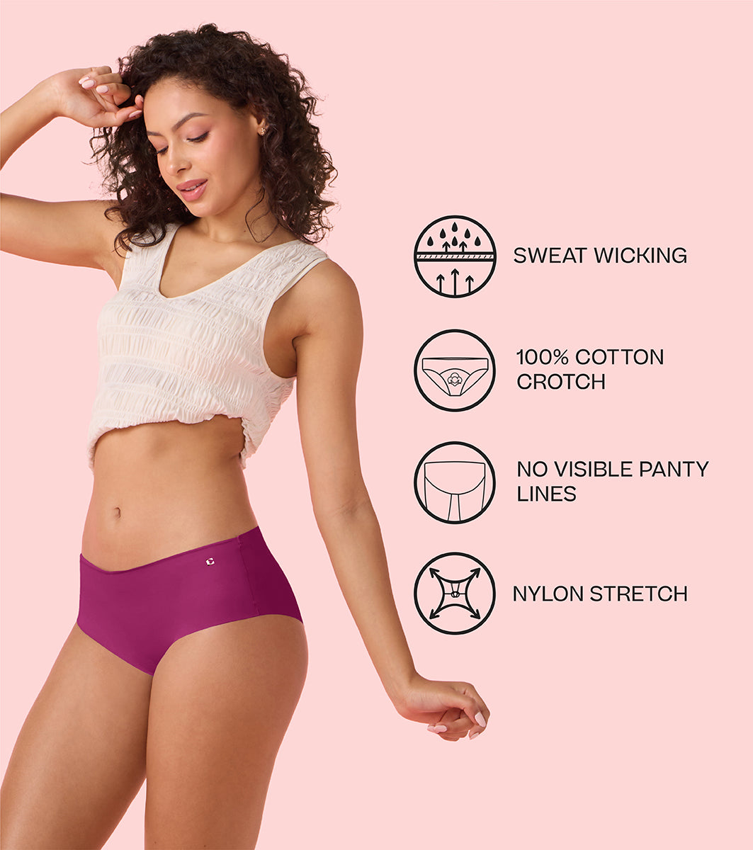 Enamor Innovations Invisi, All Day Comfort, Mid Waist Hipster Panty for Women - No Visible Panty Lines, Sweat wicking, Free Cut, Full Coverage - PH40 (Queen Pink)