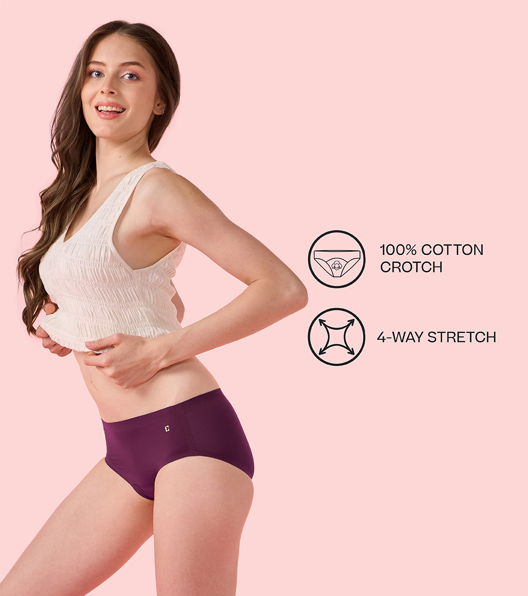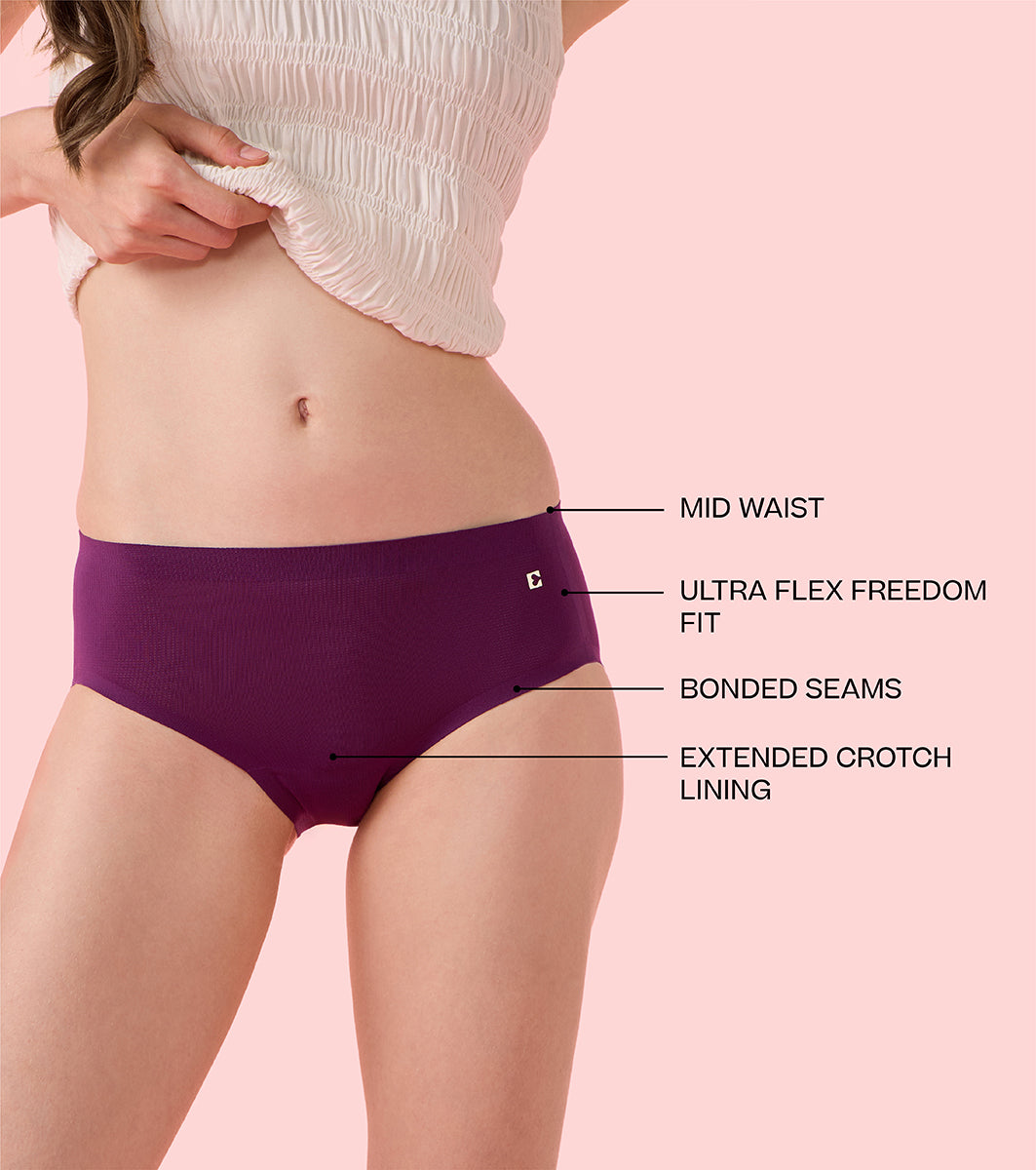 Enamor Innovations Invisi, Fit Flex, No Visible Panty Lines, All Day Comfort, Mid Waist Brief Panty for Women - Breathable Lightweight Fabric, Antimicrobial with Stain Release, Bonded Free Cut, Regular Coverage - IP02 (Deep Purple)