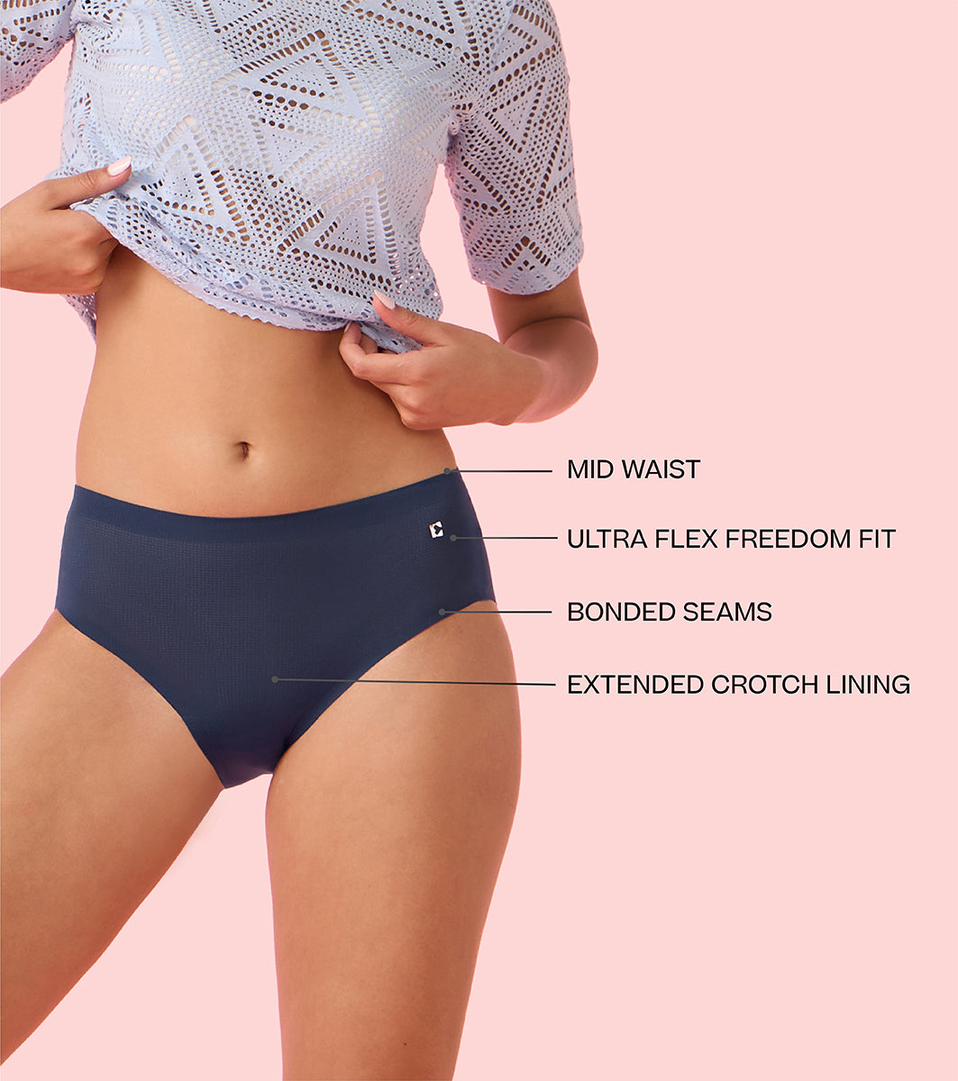 Freedom Fit - Designed to move with you without restriction. The mid brief style sits approximately 2" below your navel button for comfortable mid-rise coverage.
