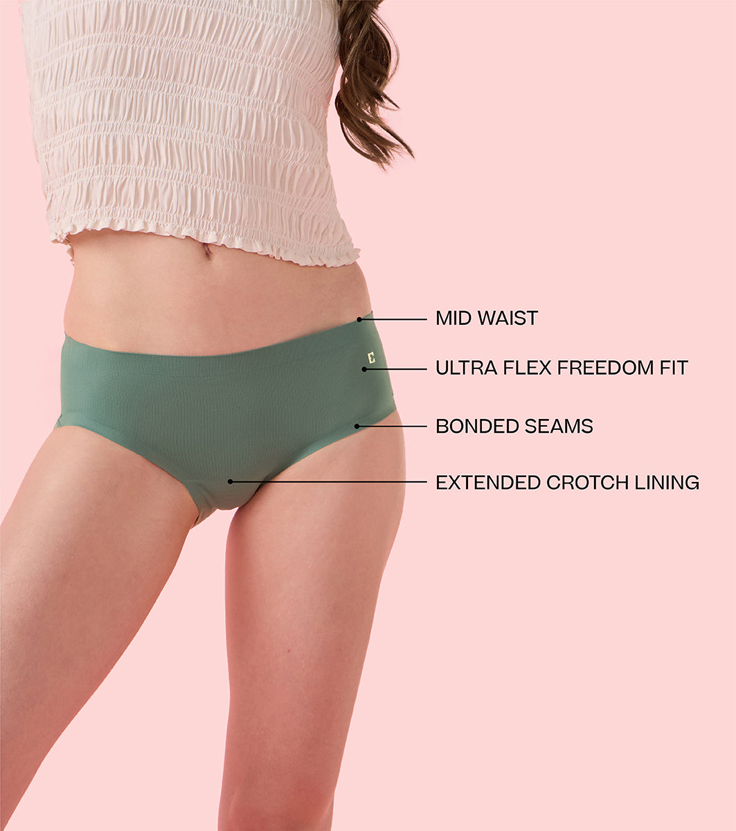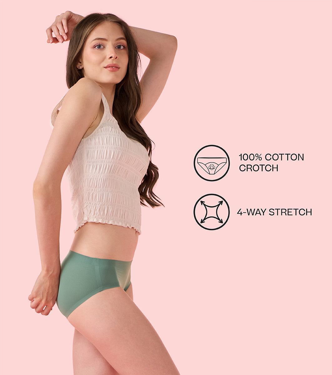 Enamor Innovations Invisi, Fit Flex, No Visible Panty Lines, All Day Comfort, Mid Waist Brief Panty for Women - Breathable Lightweight Fabric, Antimicrobial with Stain Release, Bonded Free Cut, Regular Coverage - IP02 (Sage Green)