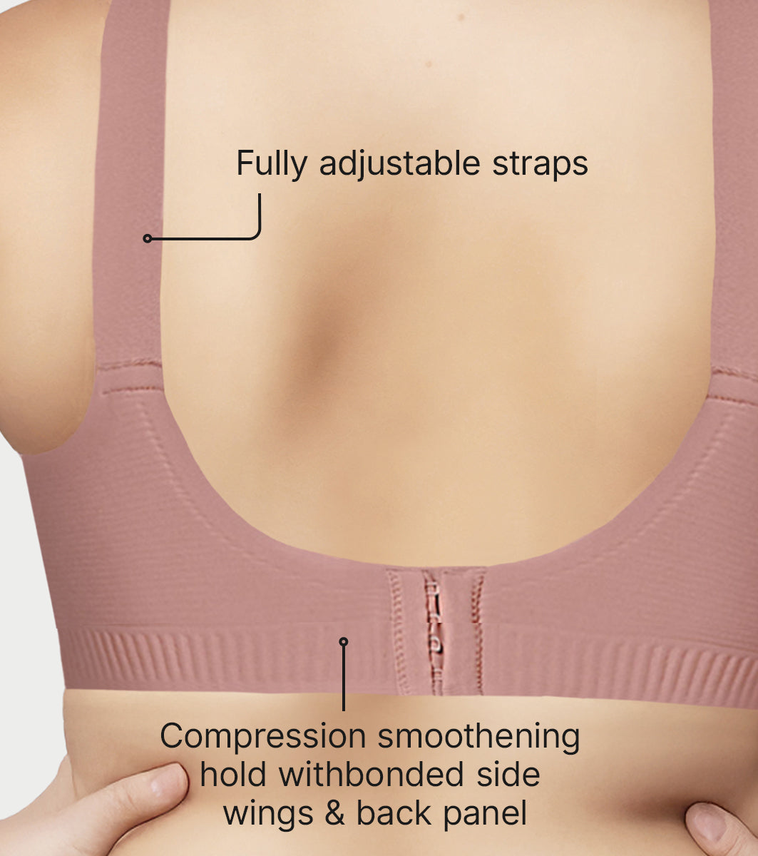 - Decorative compression smoothening hold with injection bonded side wings and back panel