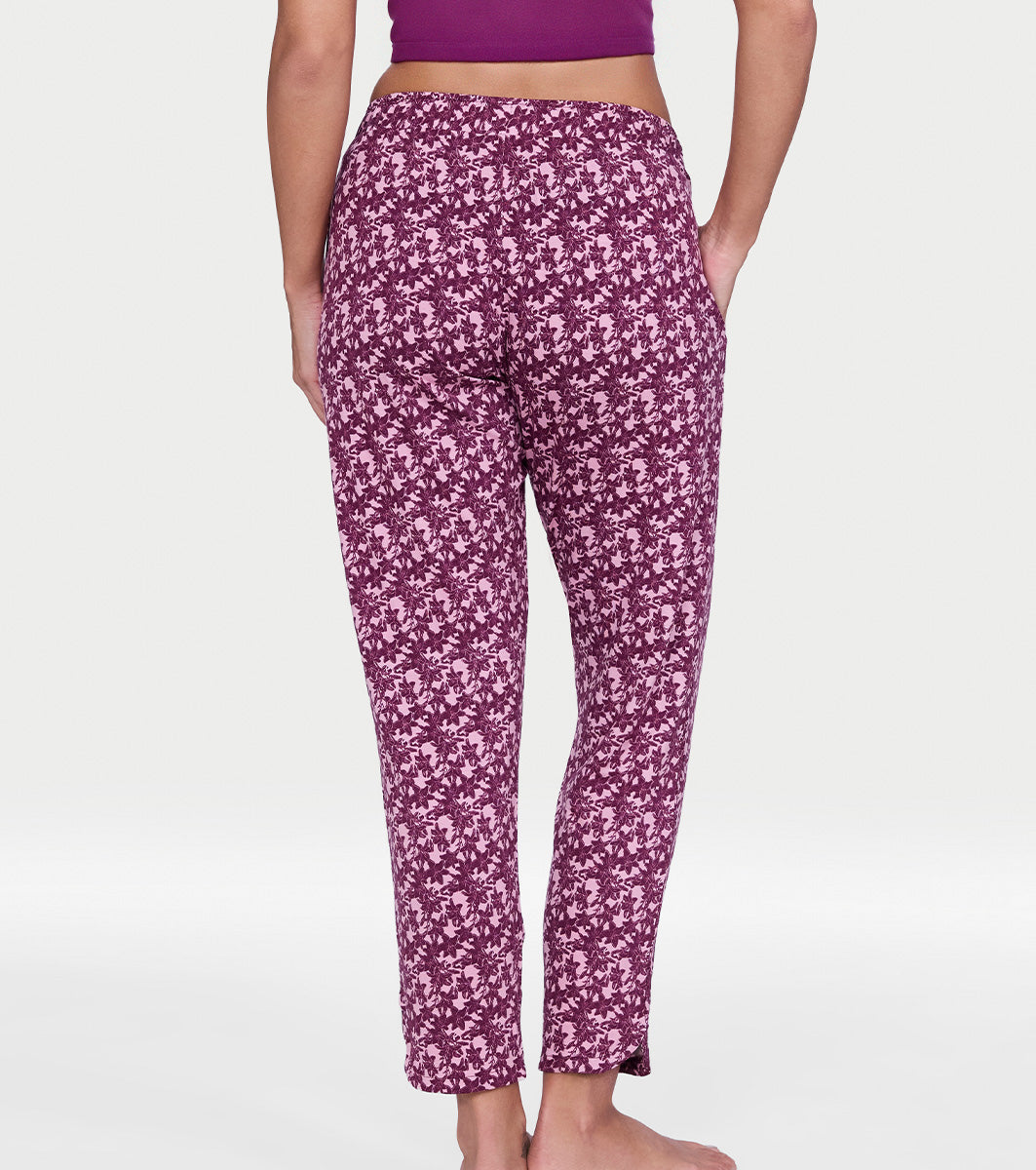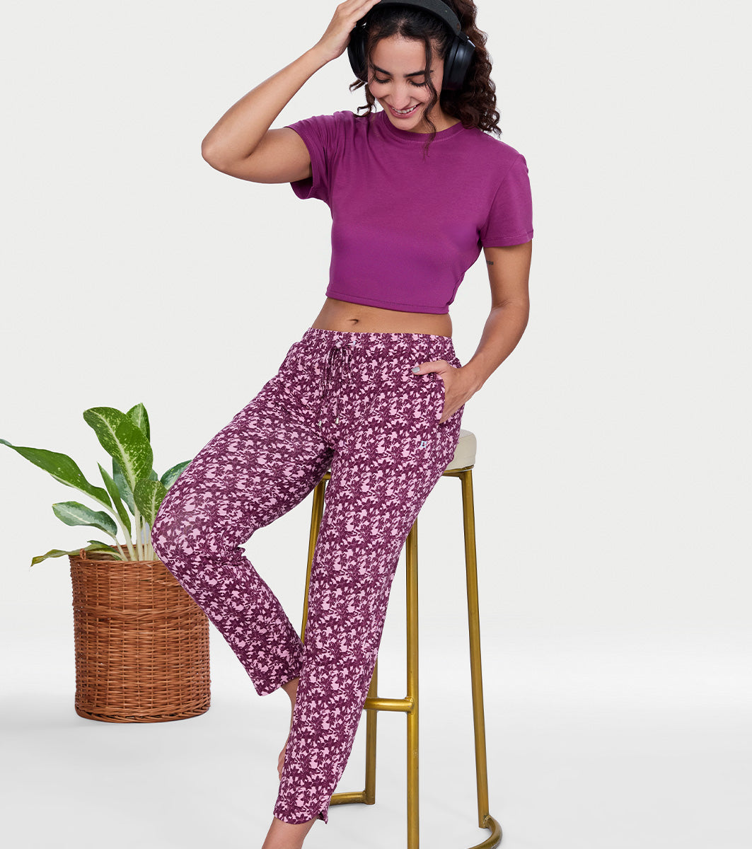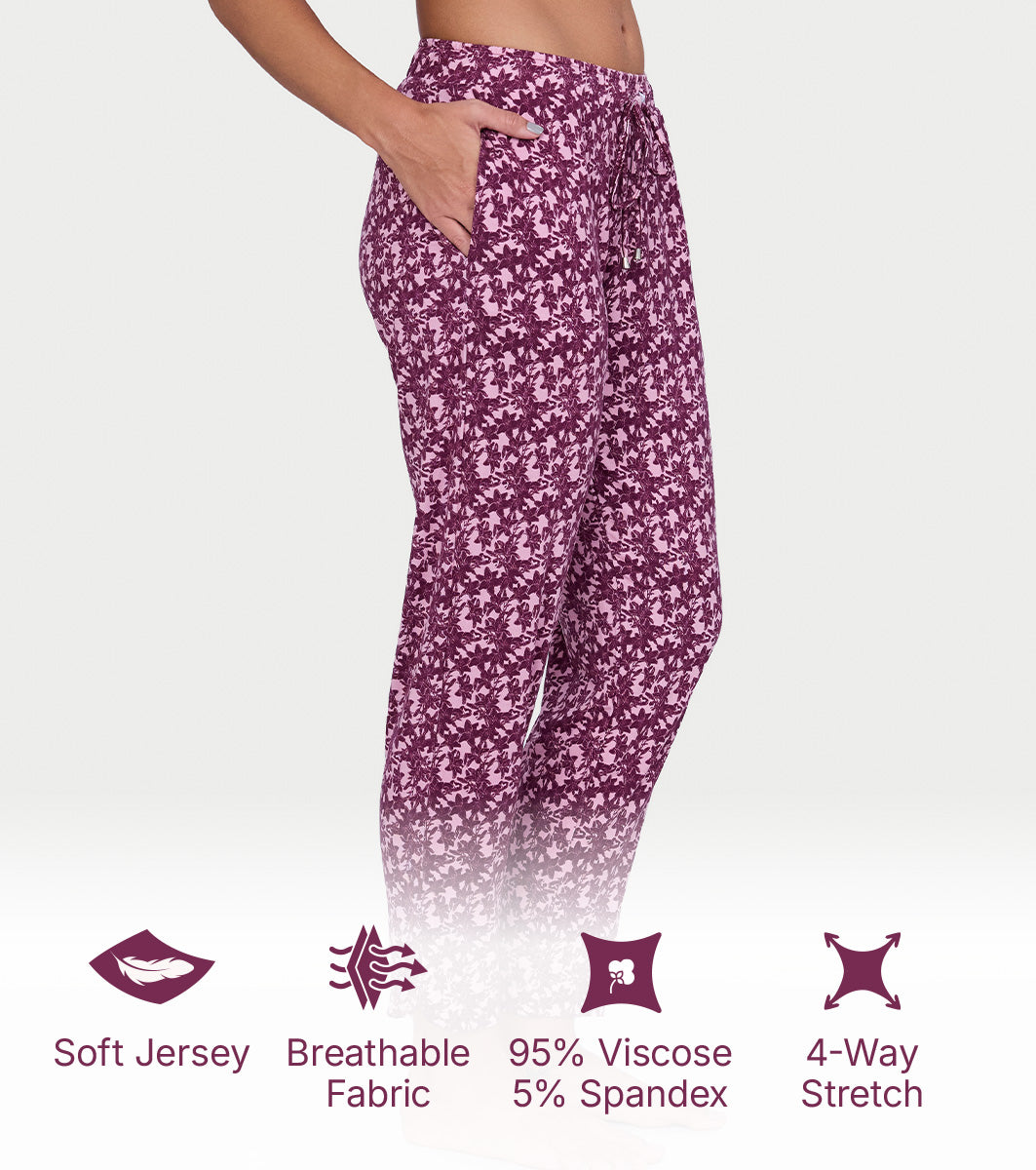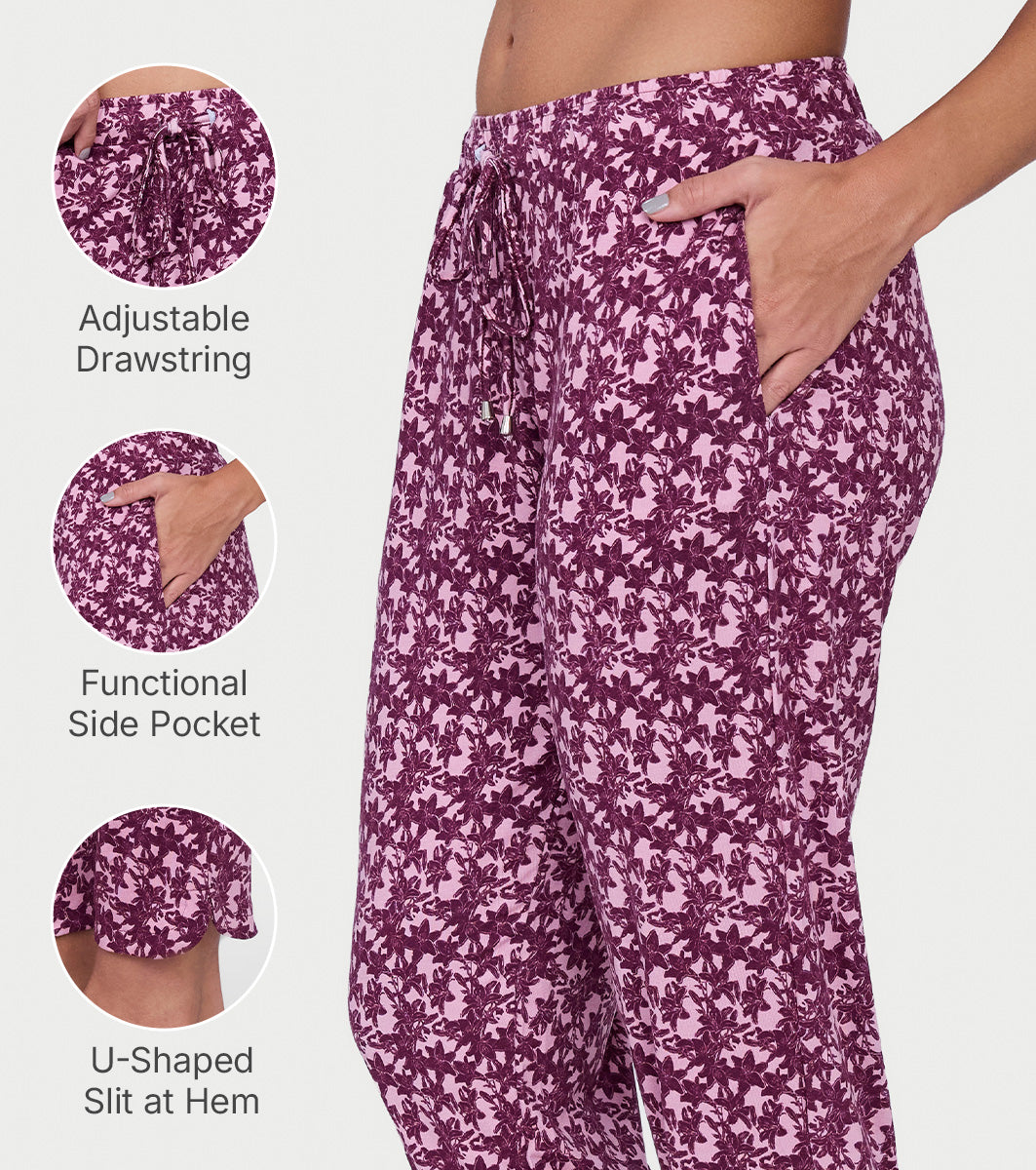 Enamor Mid Rise 7/8th length Drawstring Closure Shop In Pants for Women - Relaxed Fit, Soft & drapey 4-way stretch - E048 (Deco Rose Lily Floral Print)