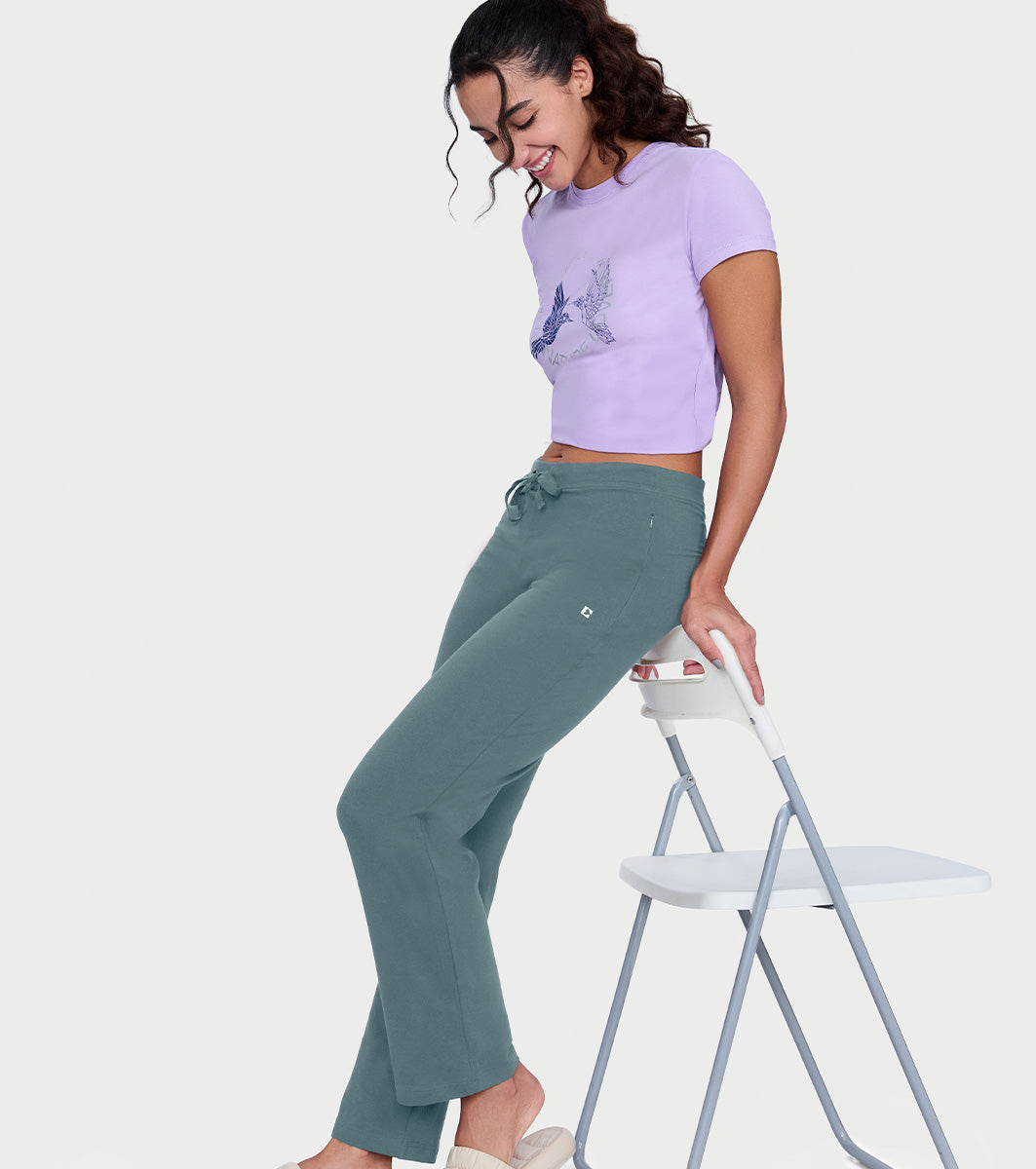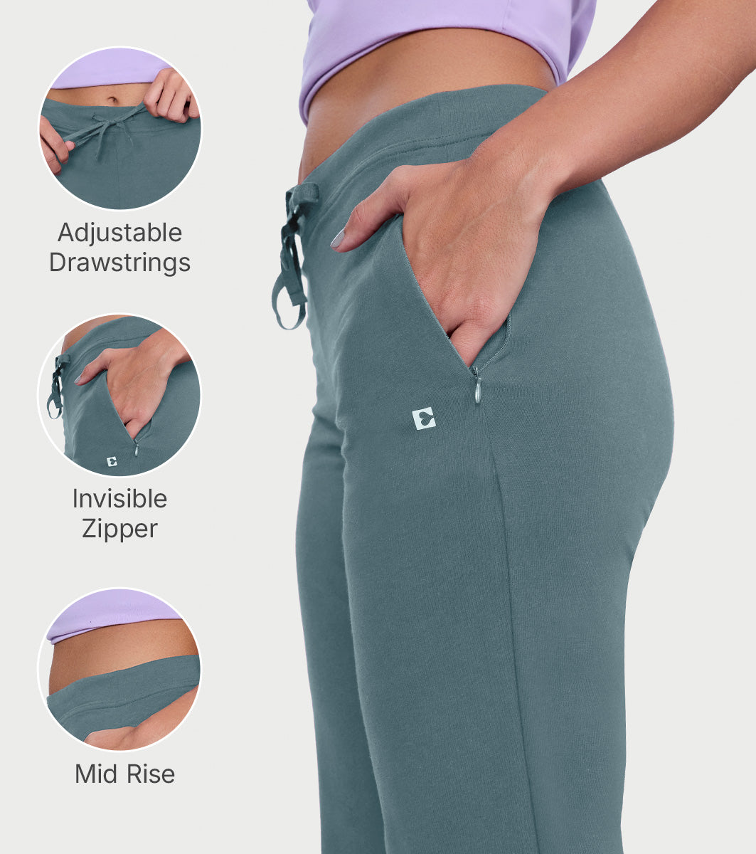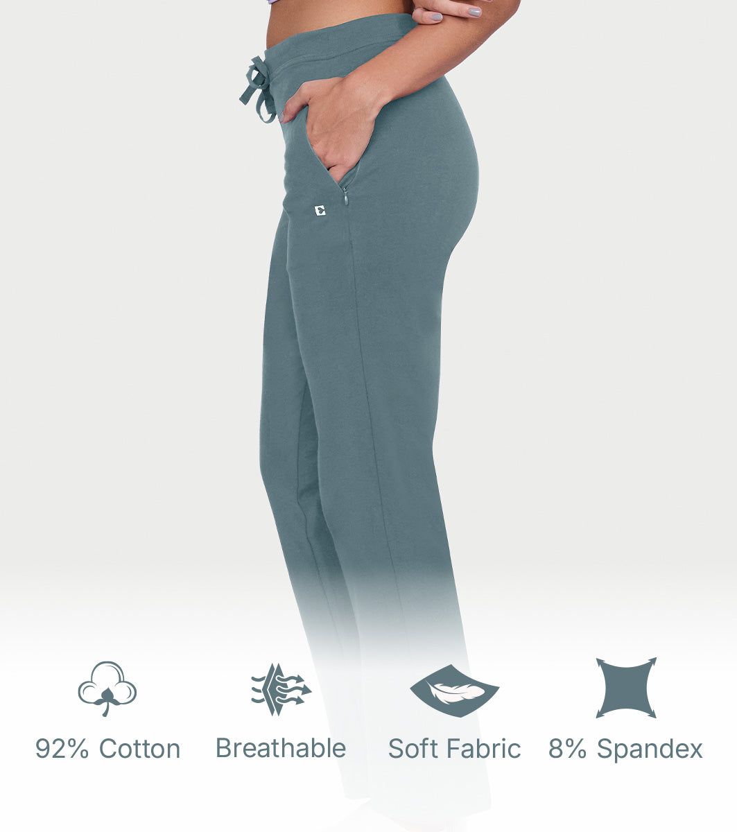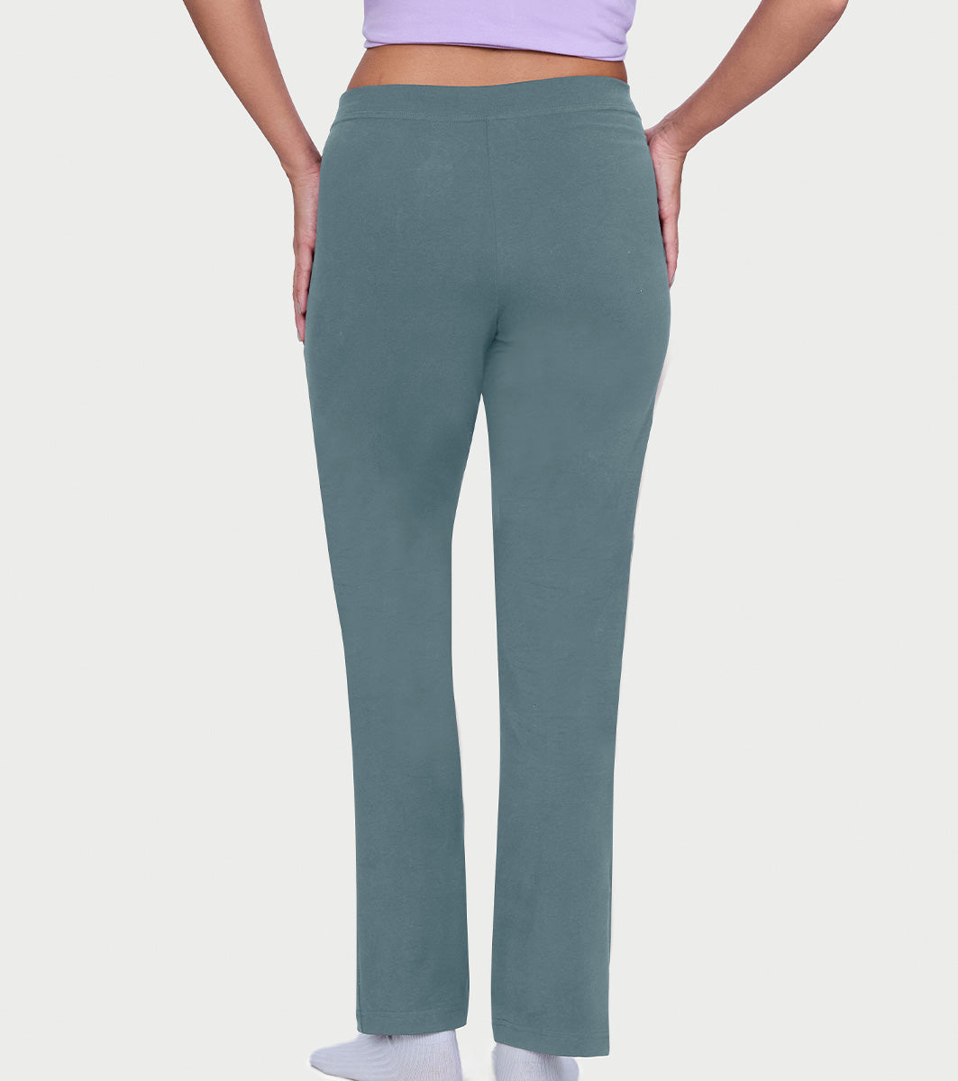 Enamor Mid Rise Regular Length Drawstring Closure Lounge Pants For Women - Slim Fit, Soft and Breathable Stretch Cotton - E014 (Stormy Blue)