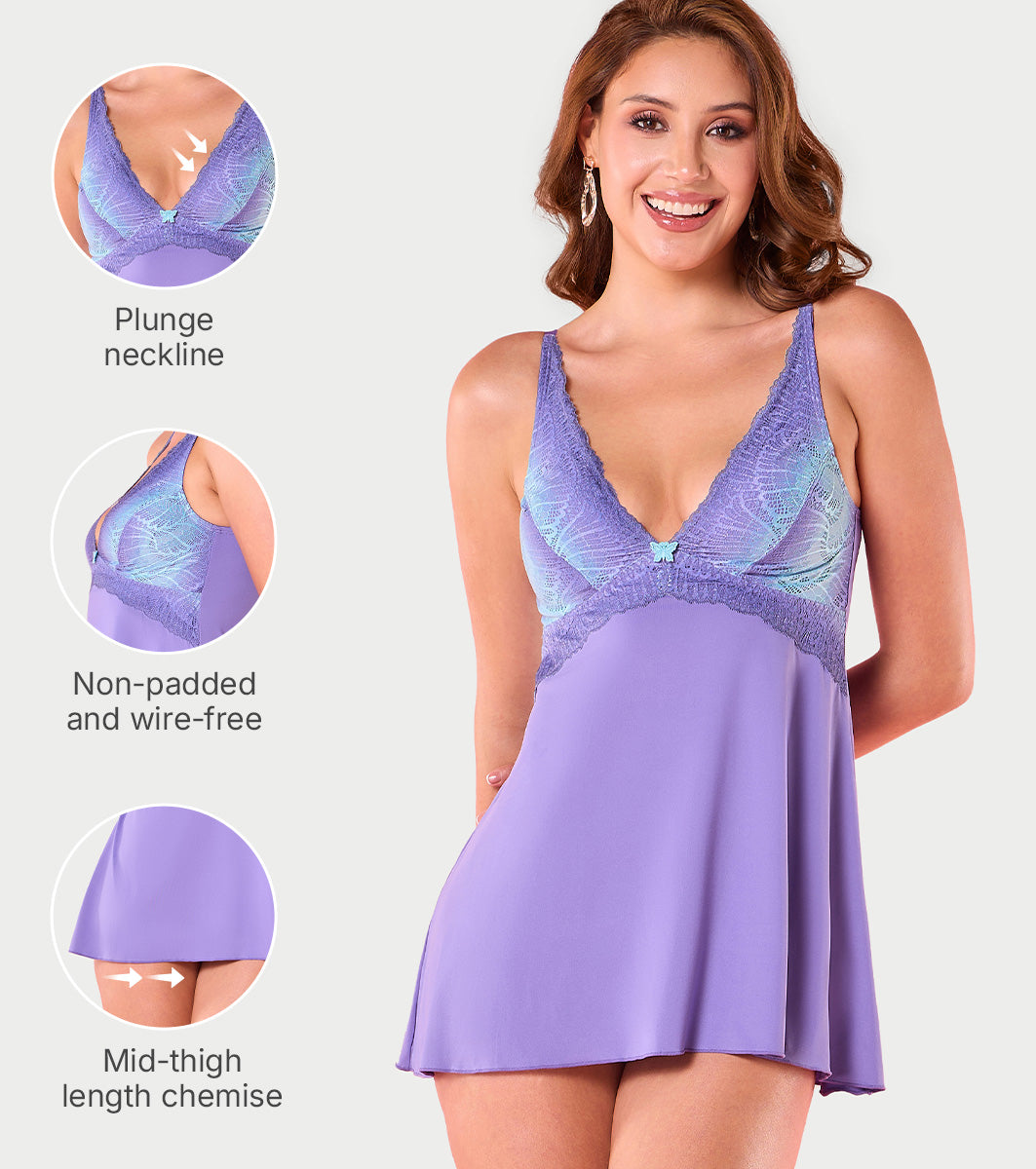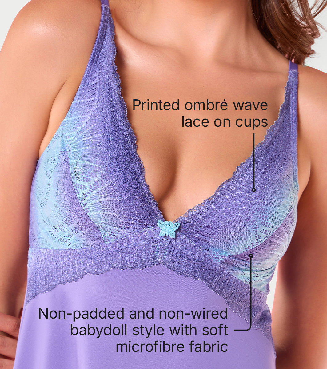 Indulge in effortless elegance with our Lace & Microfibre Babydoll. This non-wired, non-padded style offers a soft, natural fit, while delicate lace cups add a touch of romance. The flowing microfibre bottom drapes beautifully, ensuring comfort and a flattering silhouette. Perfect for a dreamy, lightweight feel with a hint of allure.