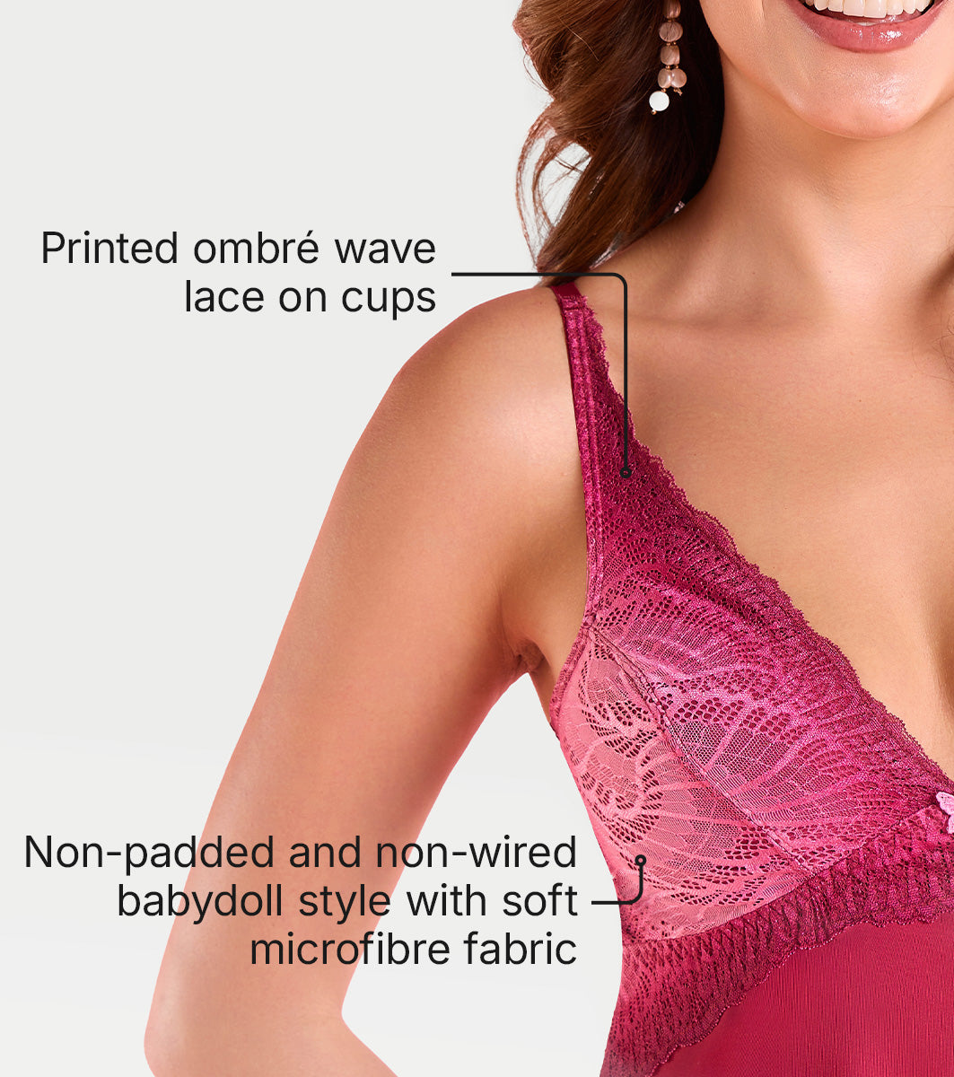 Indulge in effortless elegance with our Lace & Microfibre Babydoll. This non-wired, non-padded style offers a soft, natural fit, while delicate lace cups add a touch of romance. The flowing microfibre bottom drapes beautifully, ensuring comfort and a flattering silhouette. Perfect for a dreamy, lightweight feel with a hint of allure.