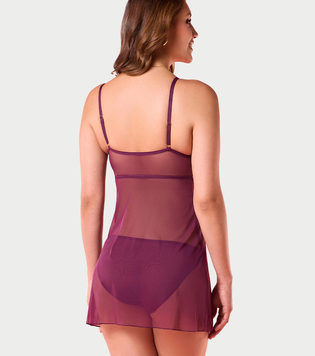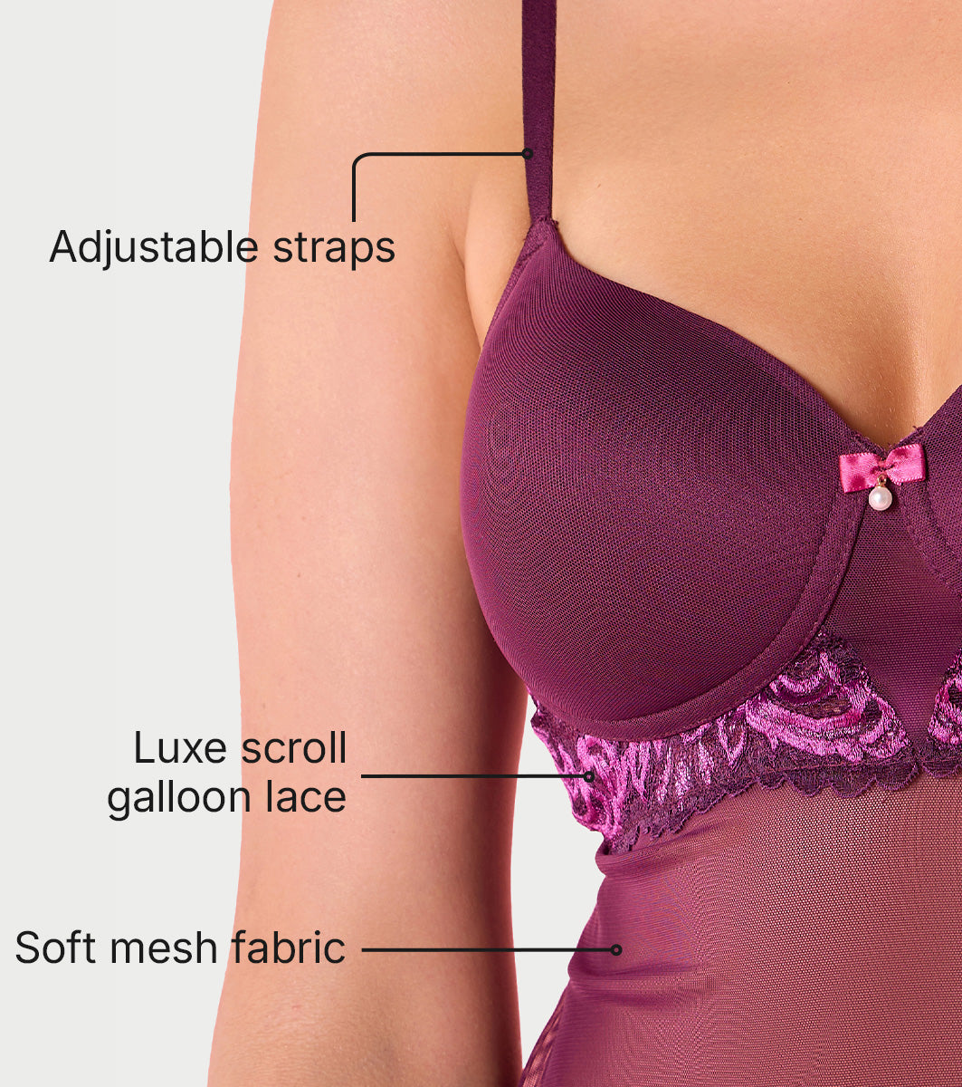Enamor N193 Padded Wire-Free Babydoll Glam Wave Chemise - Plum Swirl