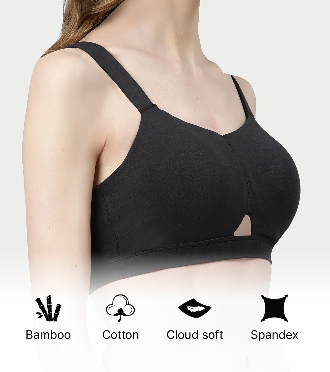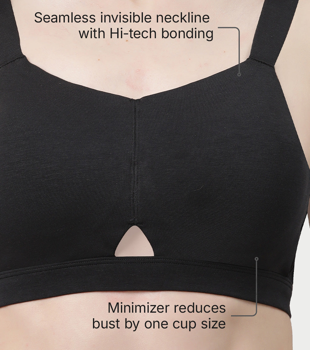 Enamor Innovations Cloudsoft Invisi Bonded Neck Women's Everyday Cotton Minimizer Bra - Padded, Wirefree, Full Coverage - A064 (Available in Plus Sizes) (Black)