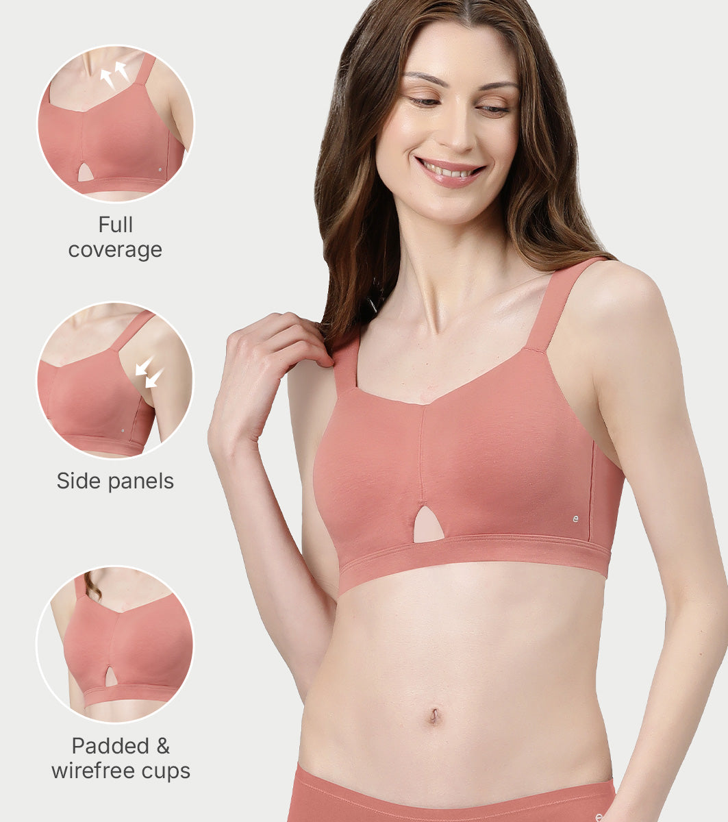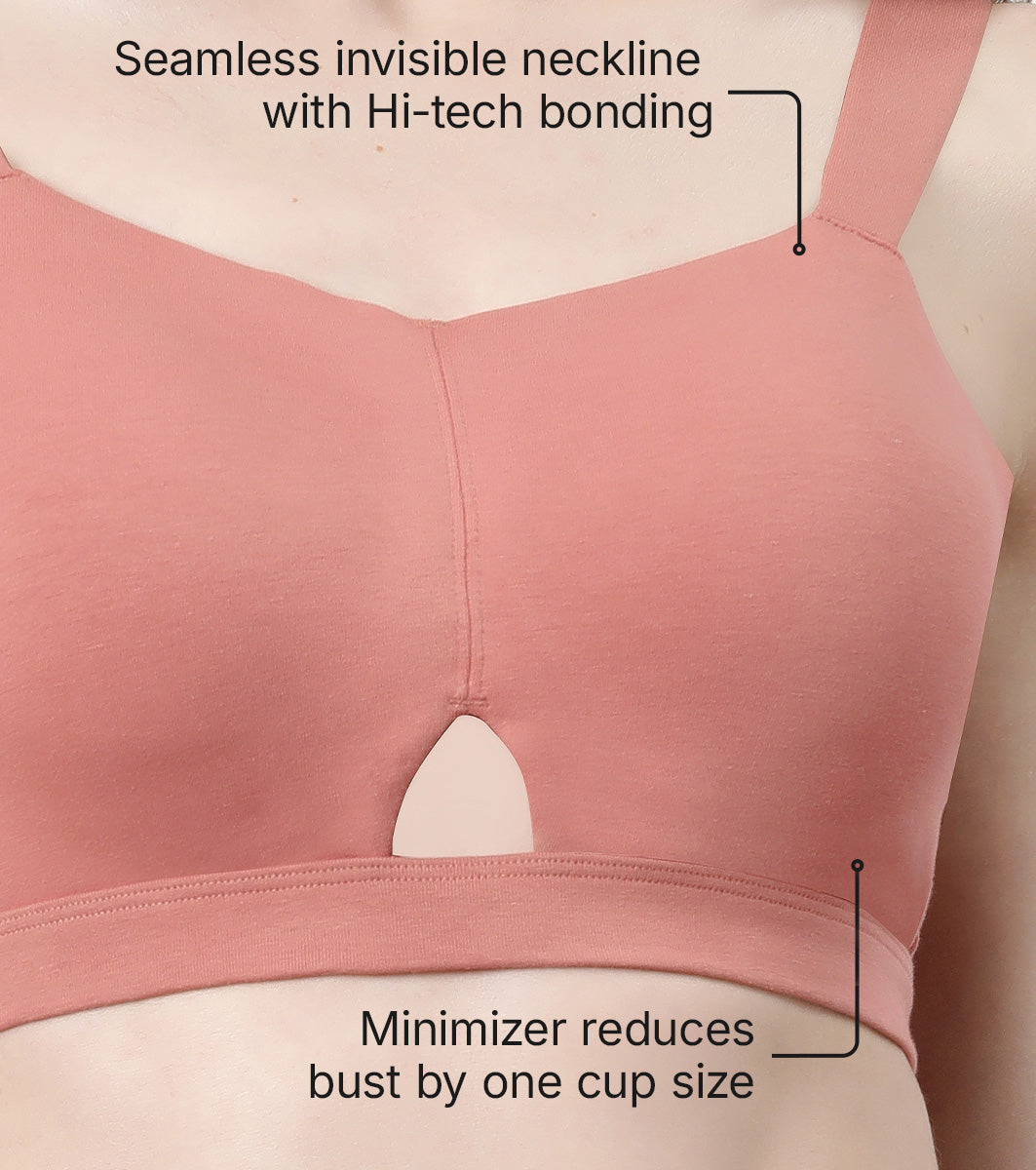 Enamor Innovations Cloudsoft Invisi Bonded Neck Women's Everyday Cotton Minimizer Bra - Padded, Wirefree, Full Coverage - A064 (Available in Plus Sizes) (Rosette)