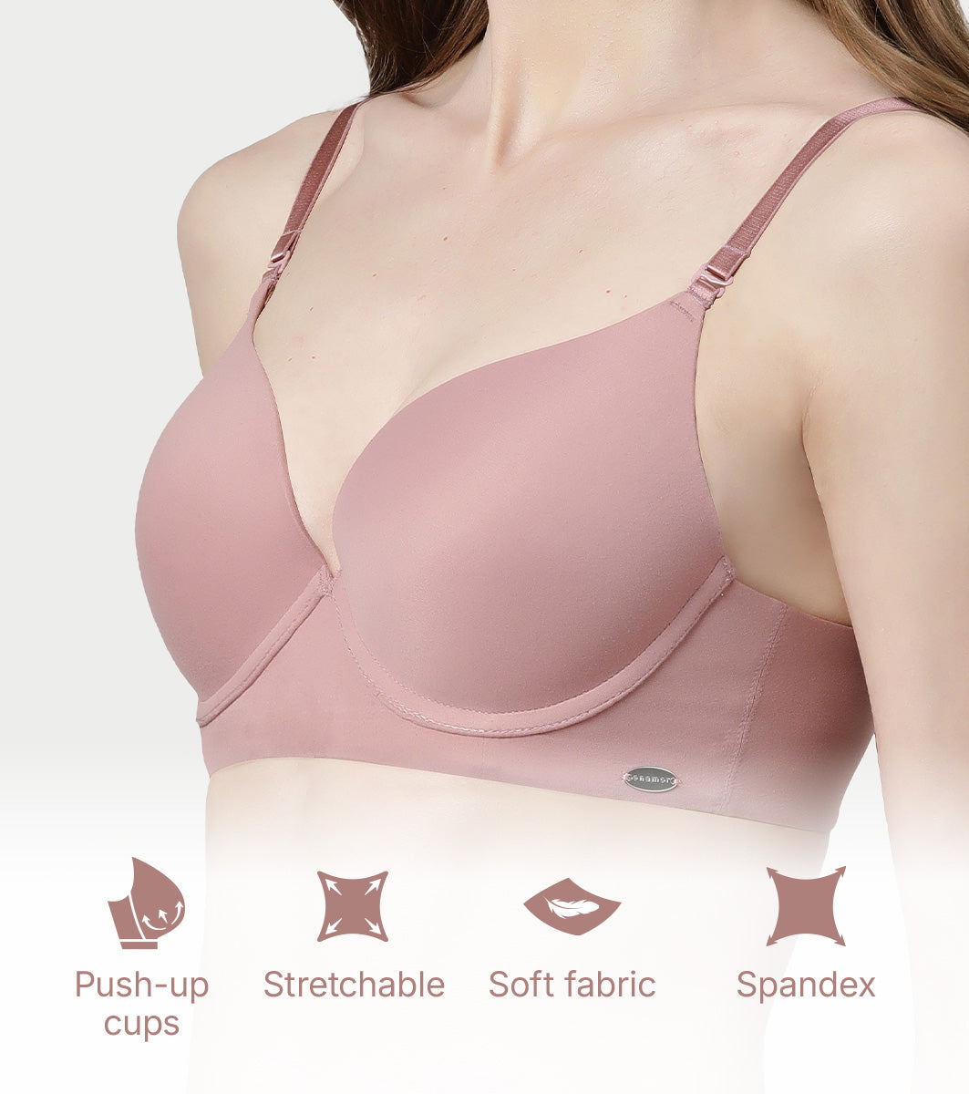 Enamor Innovations Transform Gel-Cup, Air-Brush Enhancer, Double Push-Up Women's Bra - Powder finish, Padded, Wired, Medium Coverage - F114 (Nostalgia Rose)