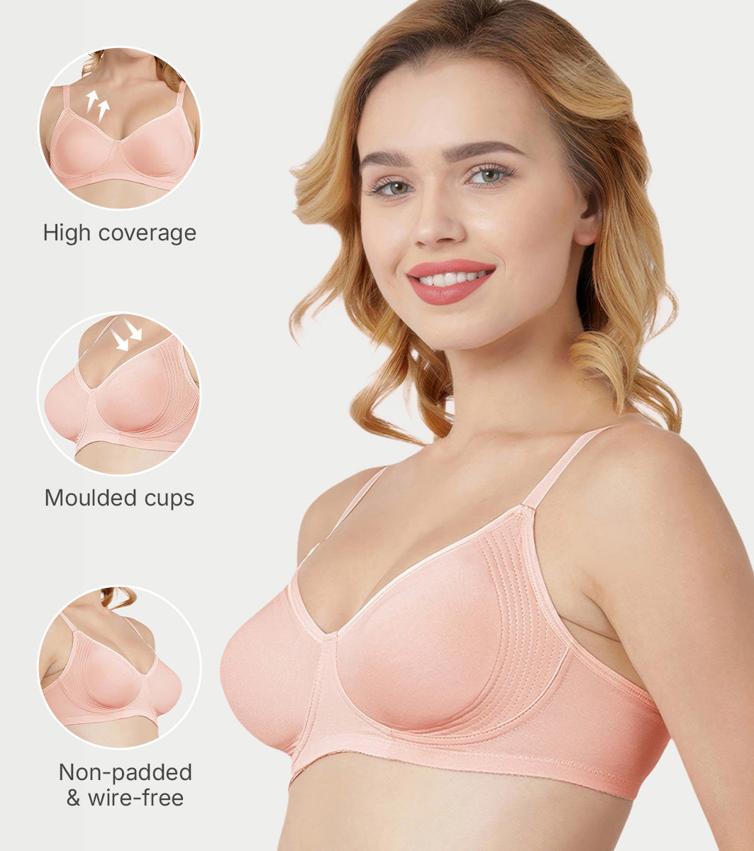 Enamor Innovations Fabcool Encircled Side Support Shaper, Non Padded, Wirefree, High Coverage, Women's Cotton Everyday Bra - A042 (Available in Plus Sizes) (Pearl)
