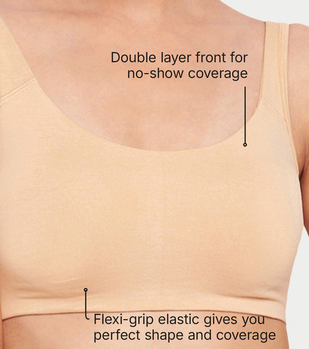 Enamor Low Impact Women's Cotton Everyday Sports Bra - All Day Comfort, Non Padded, Wirefree, High Coverage - SB06 (Skin)