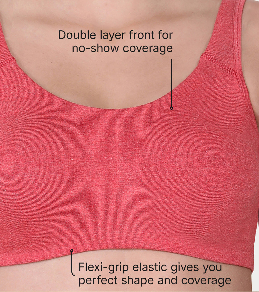 Enamor Low Impact Women's Cotton Everyday Sports Bra - All Day Comfort, Non Padded, Wirefree, High Coverage - SB06 (Tomato Melange)
