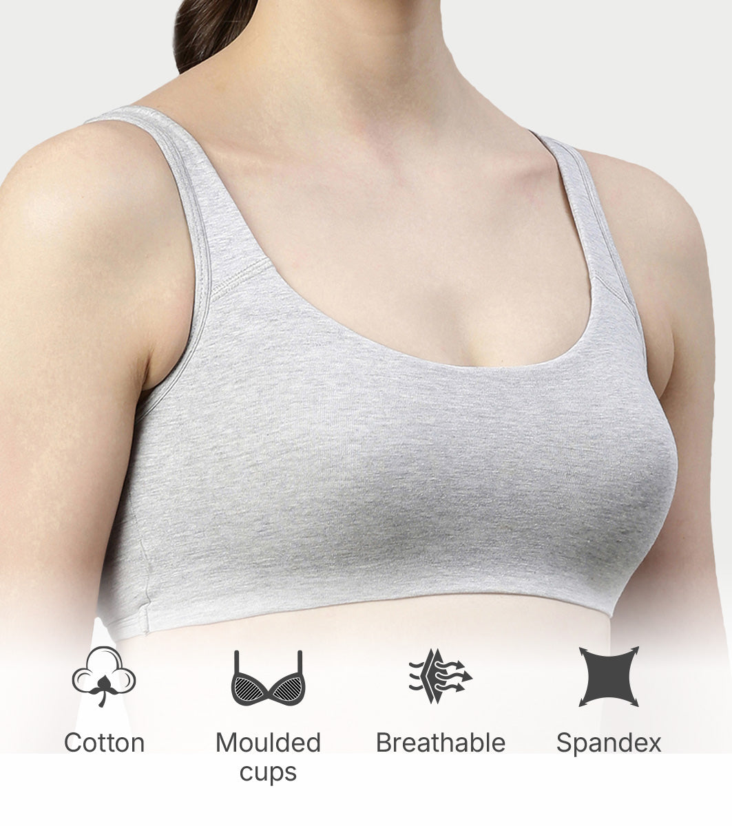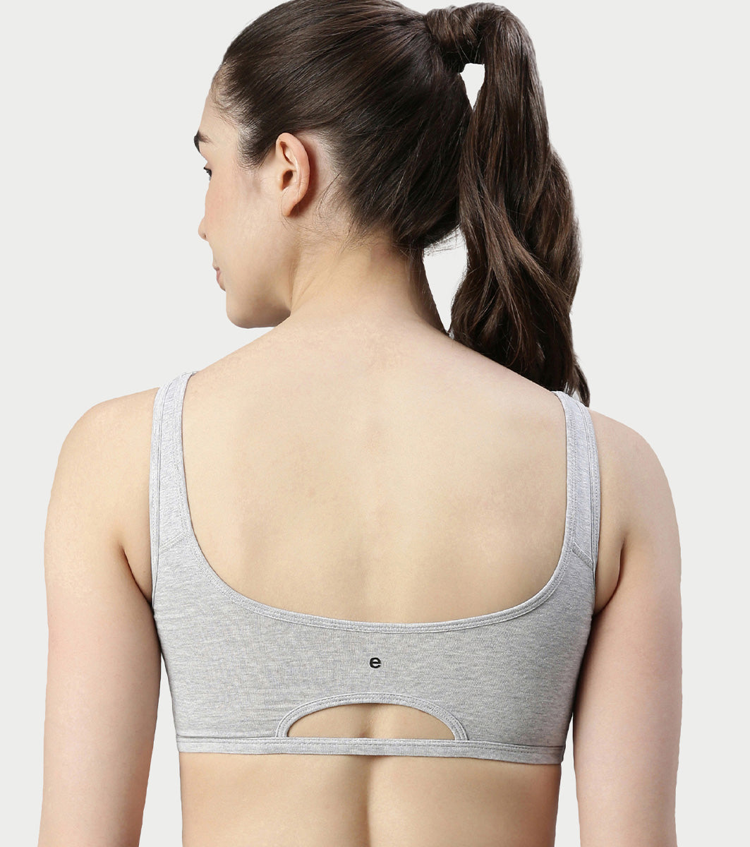 Enamor Low Impact Women's Cotton Everyday Sports Bra - All Day Comfort, Non Padded, Wirefree, High Coverage - SB06 (Greymelange)