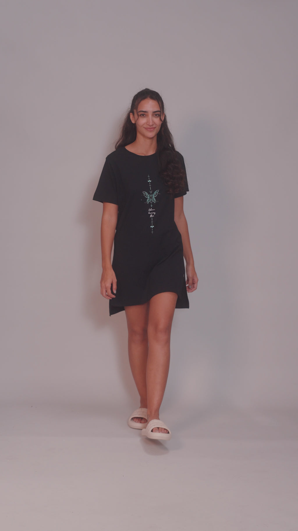 Enamor Short Sleeve Crew Neck Mid Thigh Length Tunic T-Shirt For Women - Relaxed Fit, Soft and Breathable Cotton - E061 (Iceberg Green Fearlessly Antheatic)