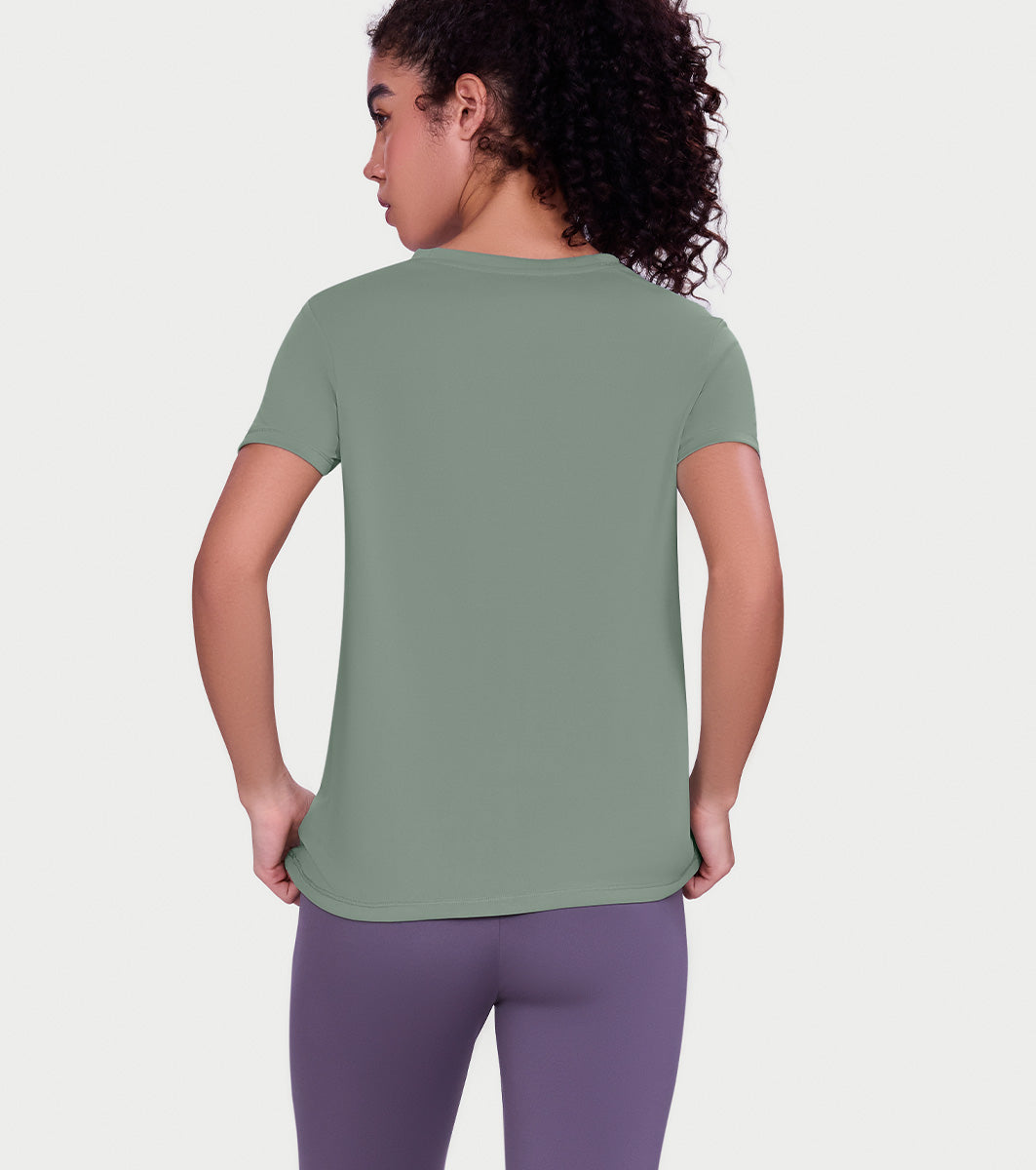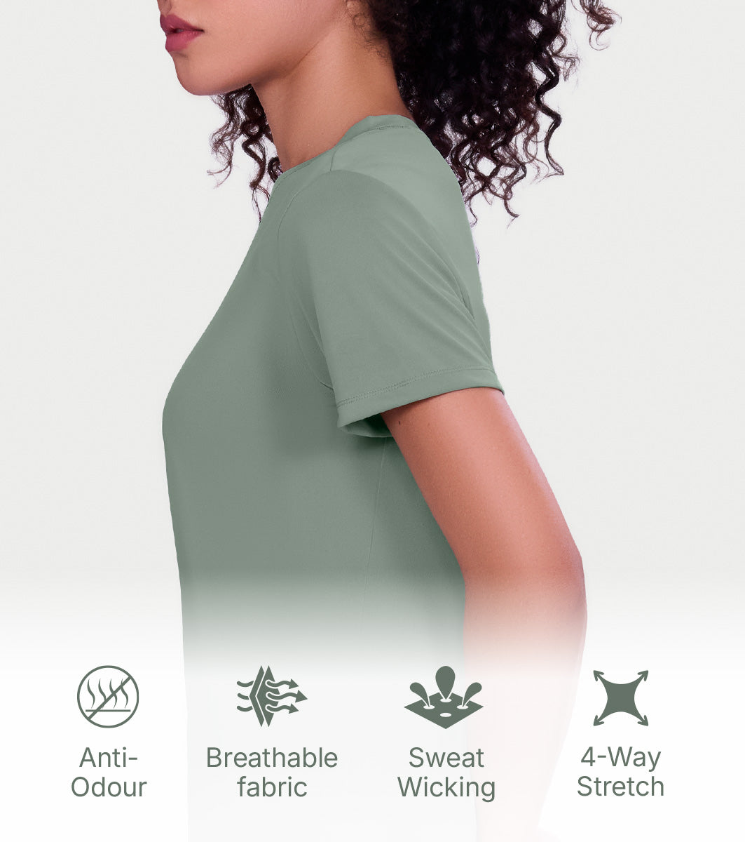 Enamor Short Sleeve Crew Neck Regular Length Basic Dry Fit Workout Crew T-Shirt for Women - Relaxed Fit, Quick Dry, Antimicrobial - A309 (Ice Green)