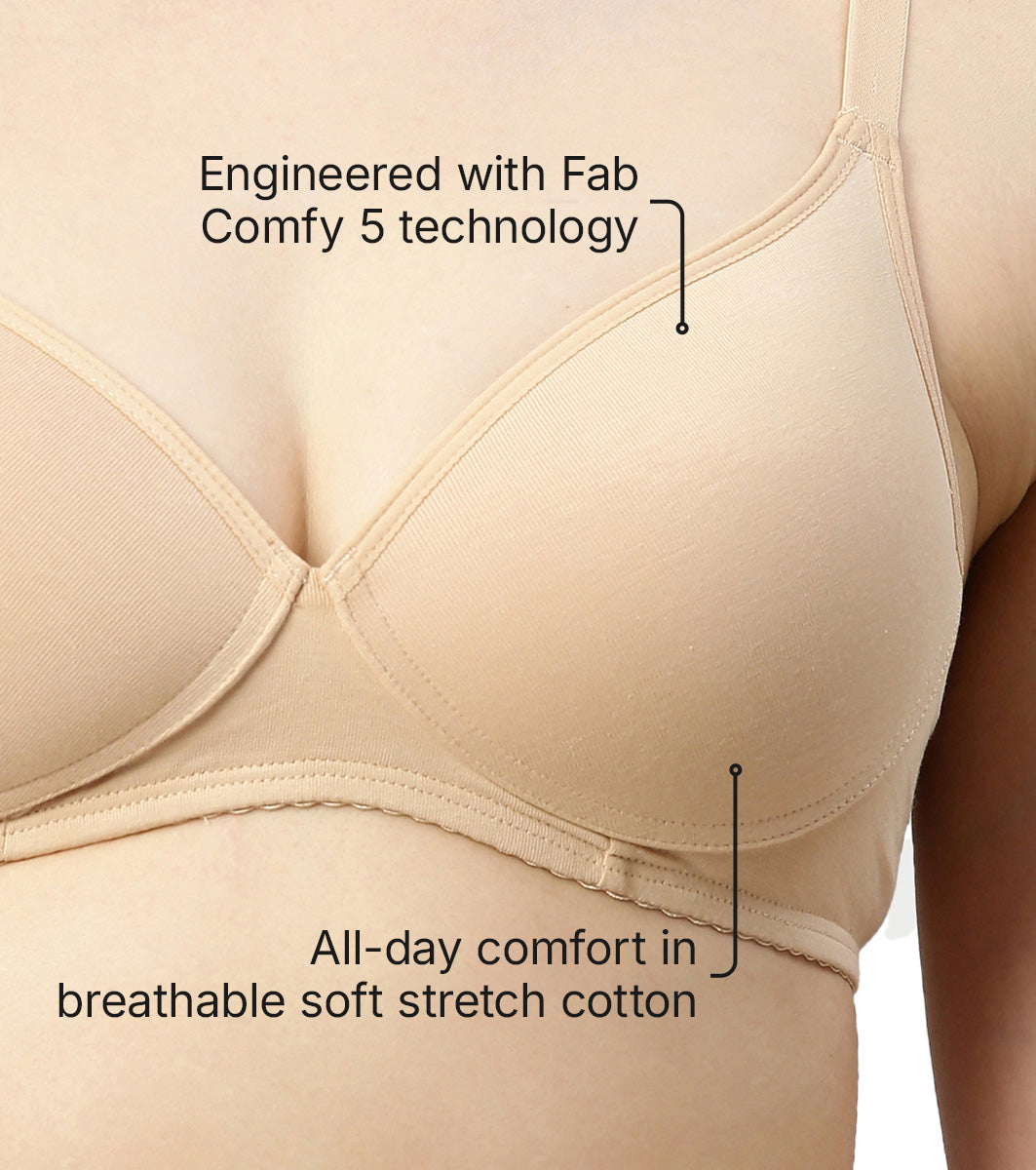 - Engineered with Fab Comfy 5 technology, this bra supports you with gentle support, soft hold straps, flexi-grip elastic and gives you perfect shape and coverage