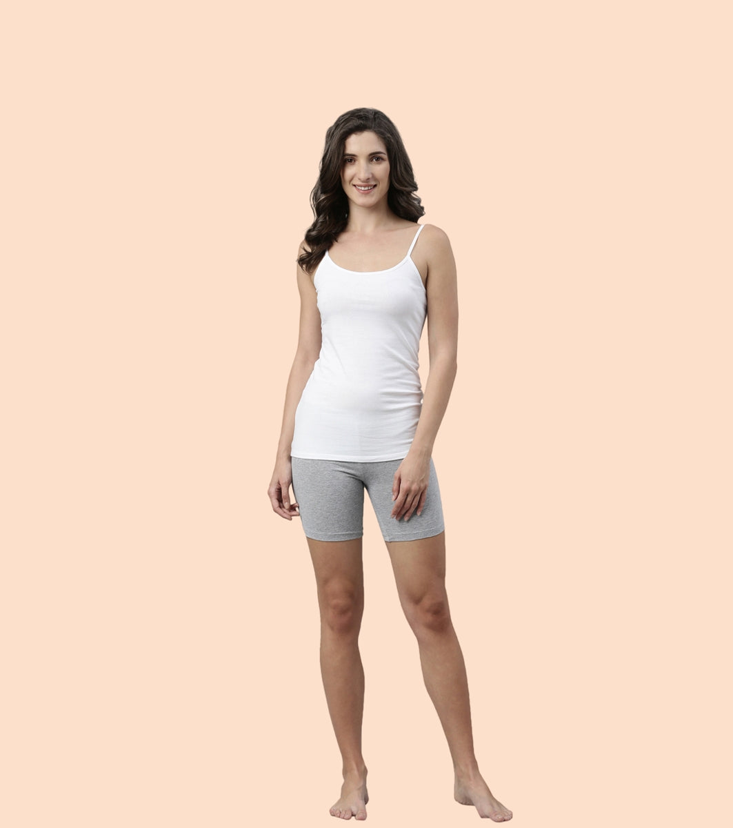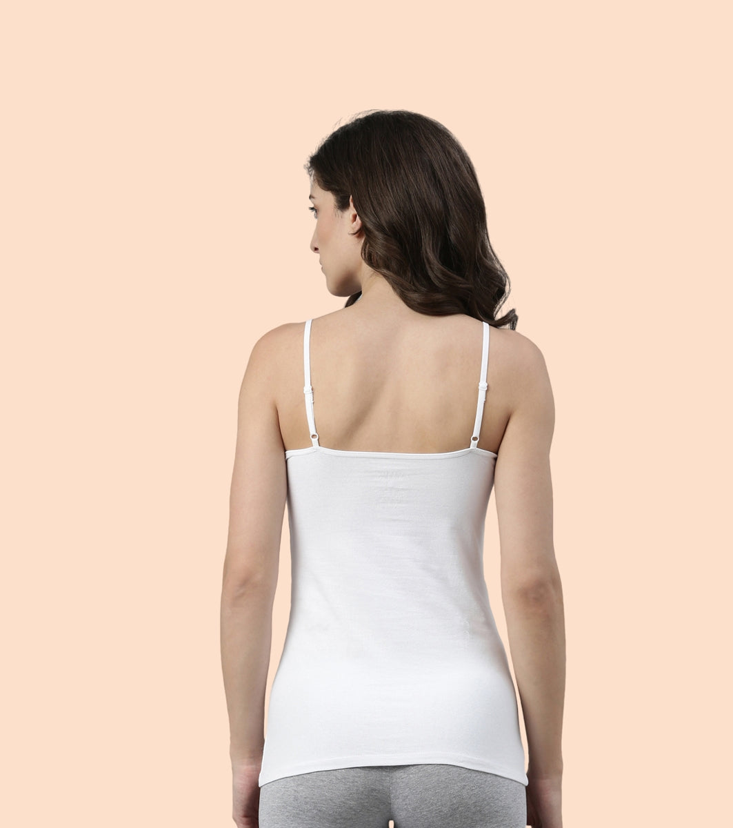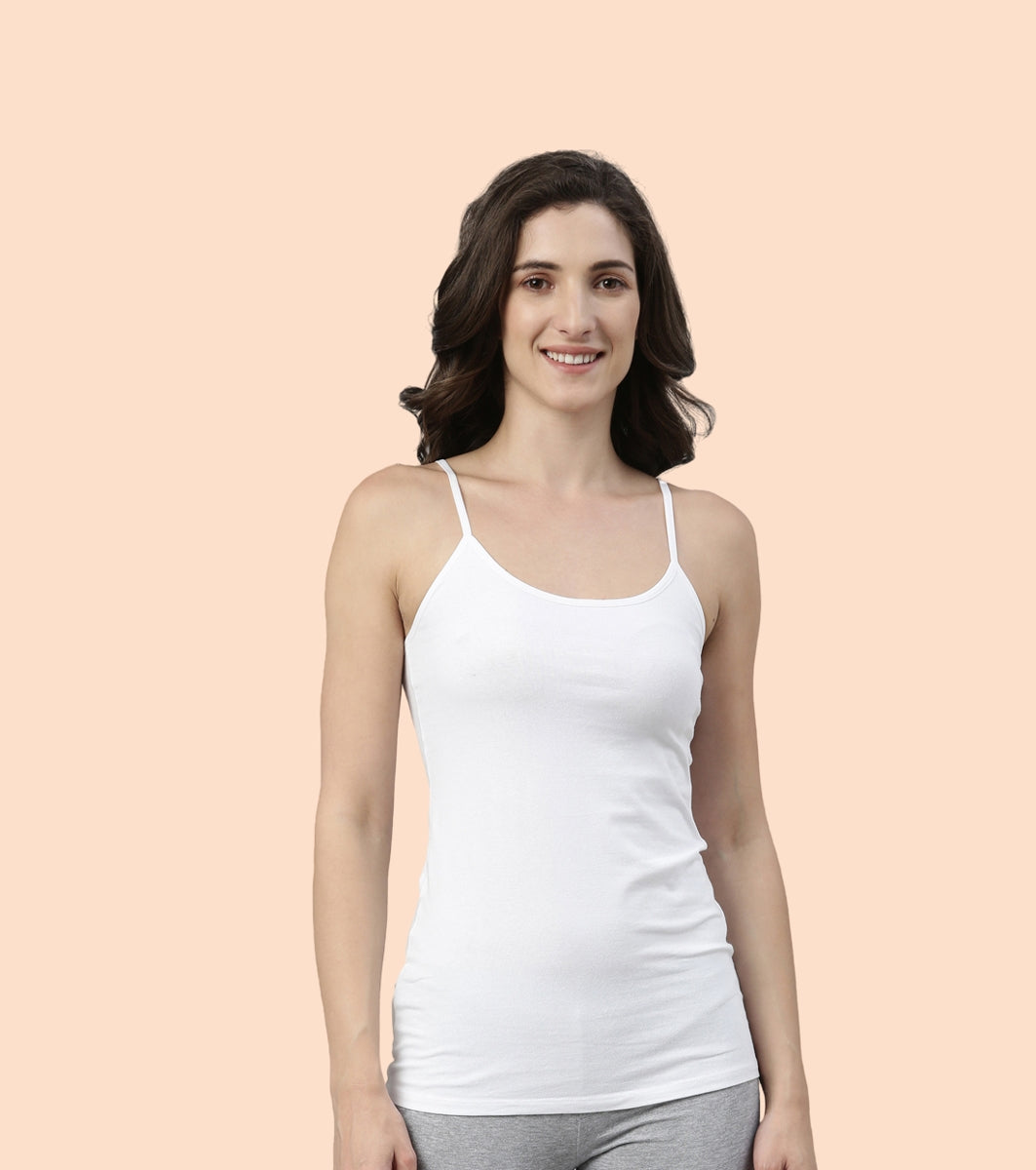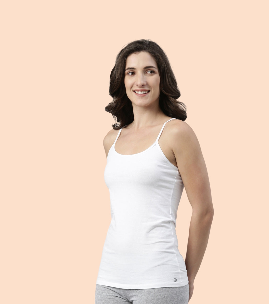 Enamor Sleeveless Scoop Neck Regular Length Camisole For Women - Slim Fit, Soft Stretch Cotton - E003 (White)