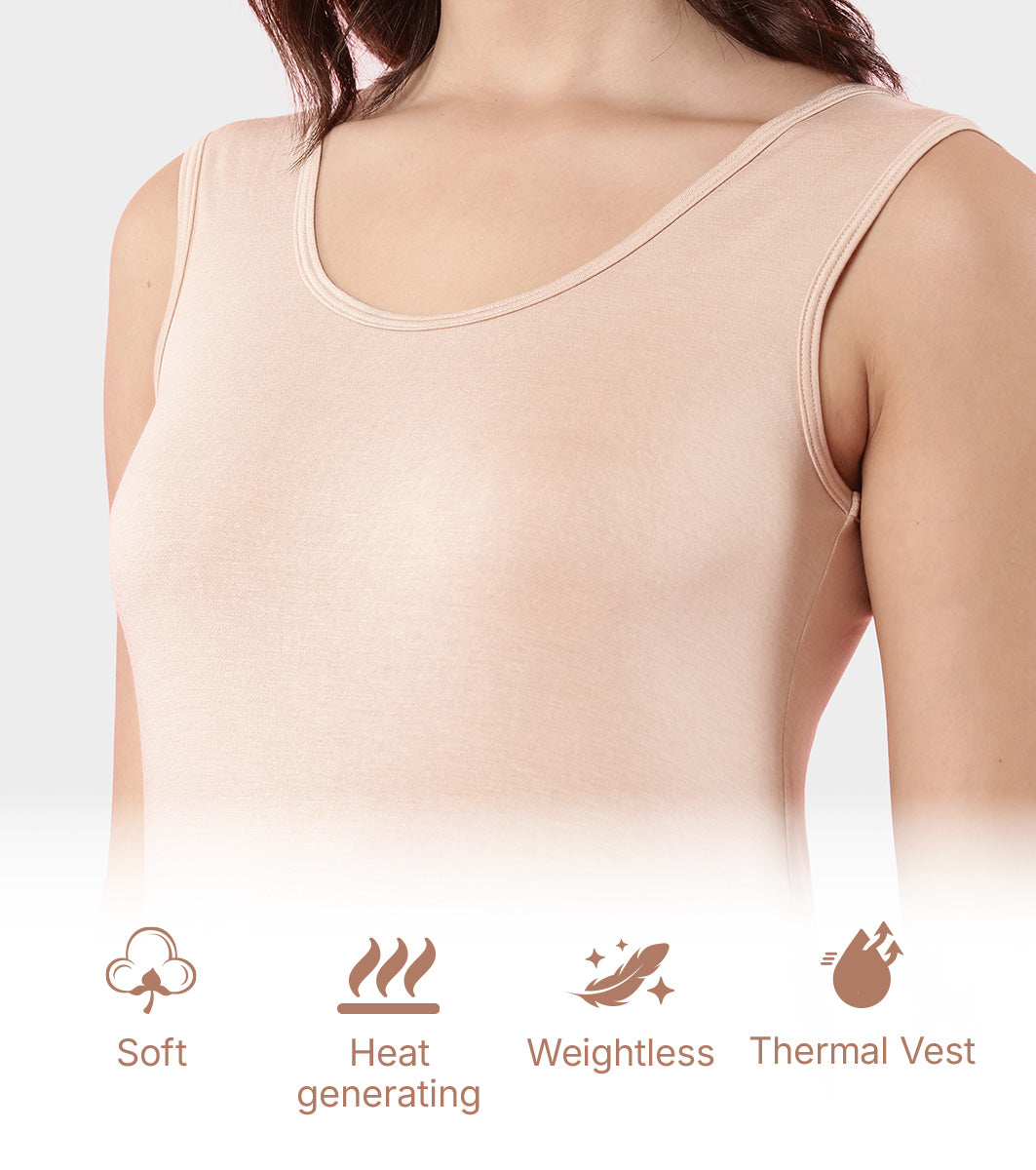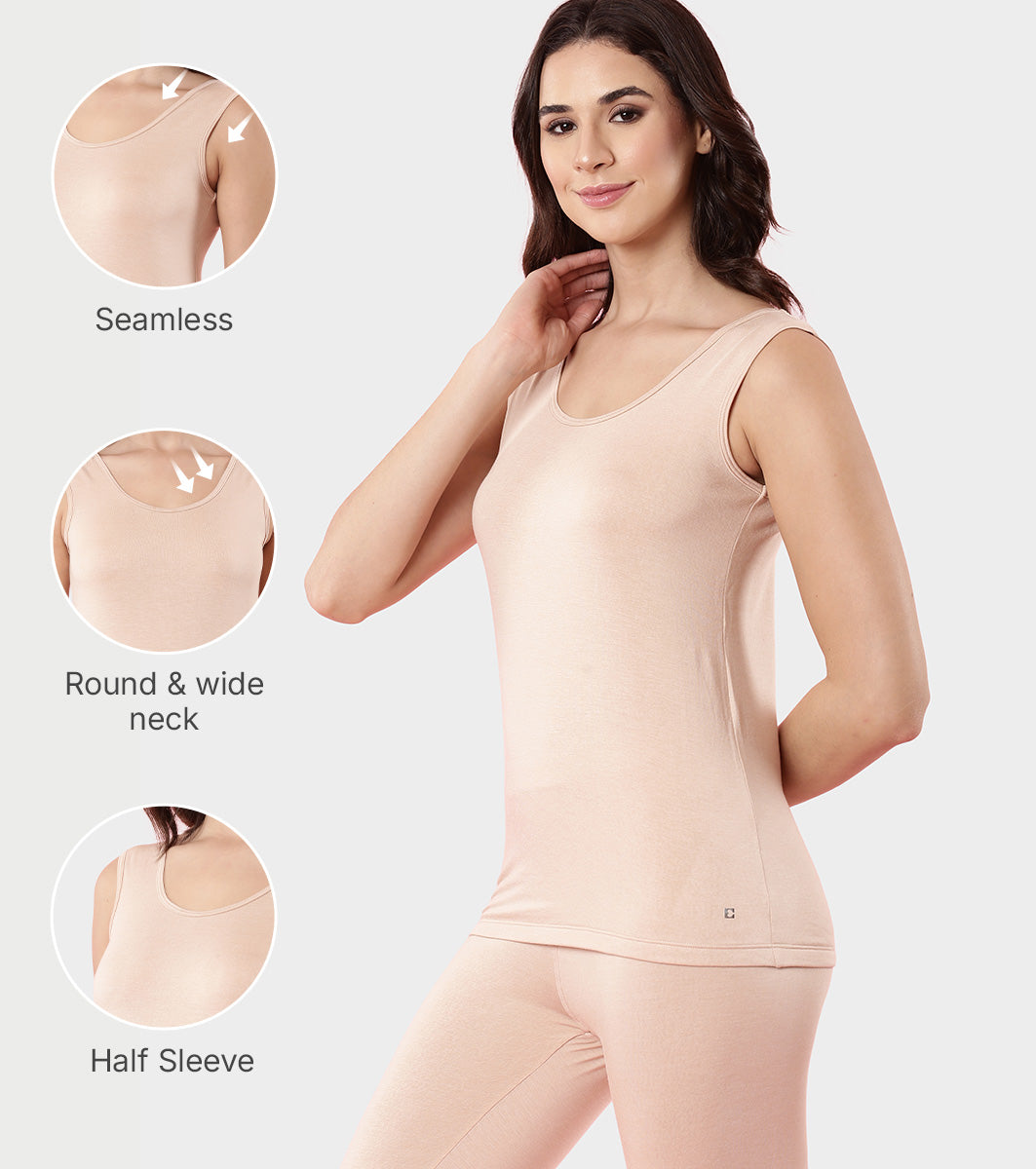 Enamor TH04 Women's Thermal Vest with Soft Heat Generating Fabric, Wide Round Neck Engineered with HeatSkins™ Warm Technology (Pale Skin)