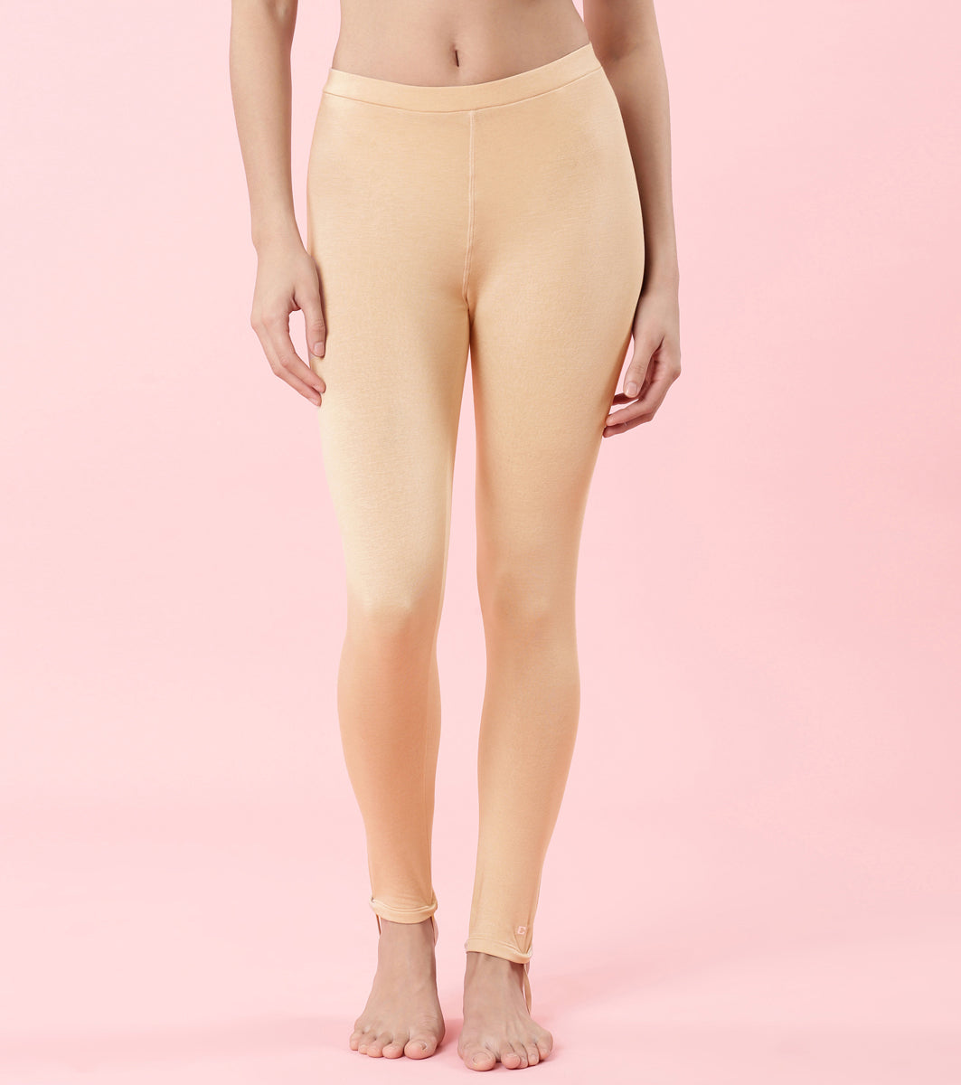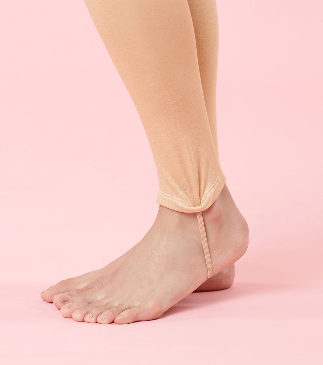 Enamor TH06 Women's Thermal Leggings with Soft Heat Generating Fabric, No Roll-Up with Stirrups at Bottom Hem, Engineered with HeatSkins™ Warm Technology. (Pale Skin)
