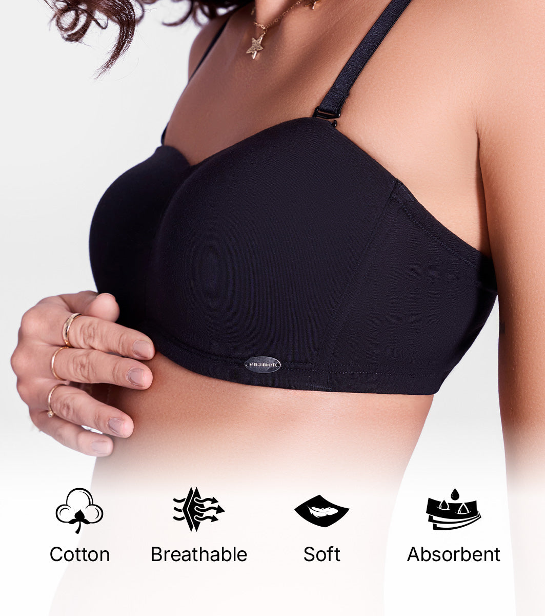 Cotton rich stretch - Soft, absorbent, and breathable for all-day ease, with cotton -rich plush cradle for enhanced under-bust absorbency, softness, and lasting comfort.