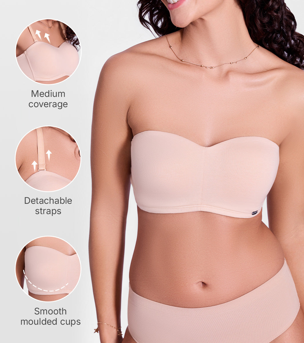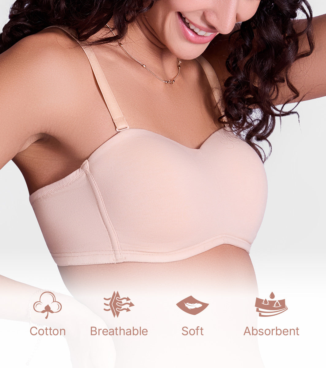 Designed to stay in place while keeping you effortlessly stylish, the Strapless Balconette Bra is perfect for everyday wear and special occasions alike. Made with soft cotton rich stretch , it offers lightweight comfort, moulded foam cups for a smooth finish, and a no show lift for versatile styling under a variety of necklines.