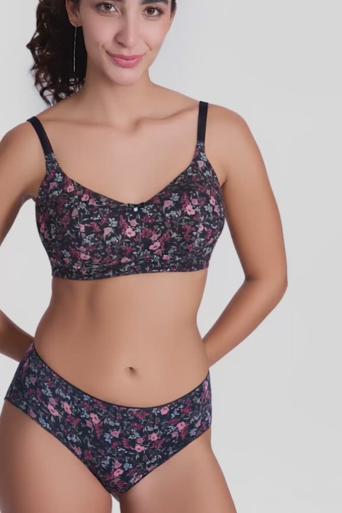Enamor P177 Ultimate Softness Modal Hipster Panty for Women - Mid Waist, Outer Elastic, Medium Coverage (Black Bouquet Print)