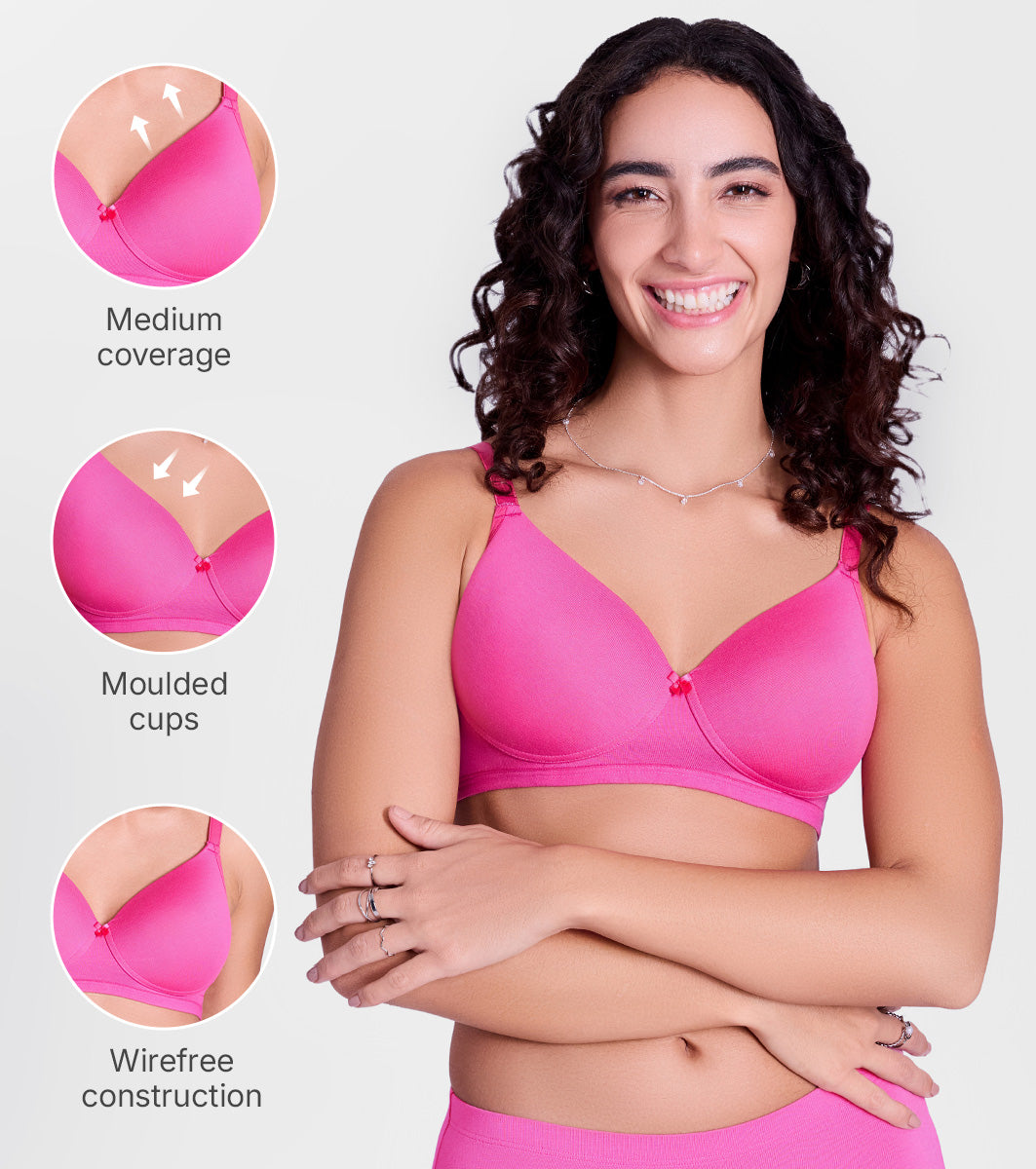 Enamor Ultra Smooth T-Shirt Bra - Padded, Non-Wired, Full Coverage - A127 (Pearl Peach/Cyber Pink)