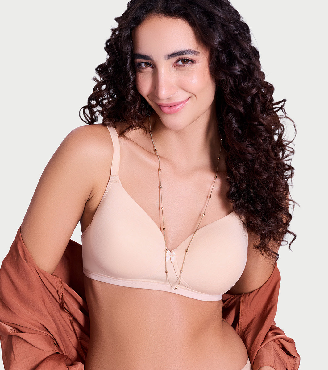 Your go-to bra for everyday comfort and style! The Ultra Smooth T-Shirt Bra is crafted with cotton rich stretch for a lightweight, breathable feel. Moulded foam cups for a perfectly smooth silhouette. With wirefree support it offers a natural lift while staying invisible under any outfit. Medium coverage promises no-spill hold.