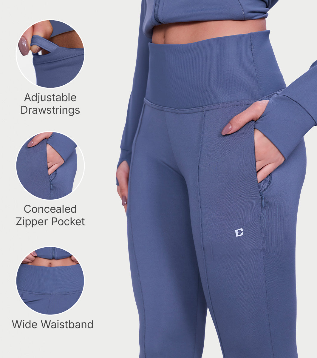 Hugged Fit – High-rise silhouette with a wide support waistband and adjustable drawstrings for a secure, flattering hold.