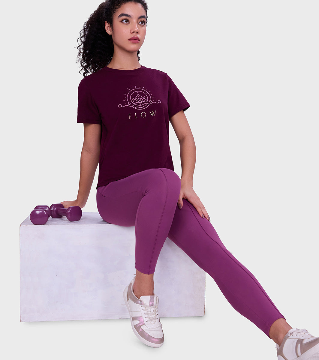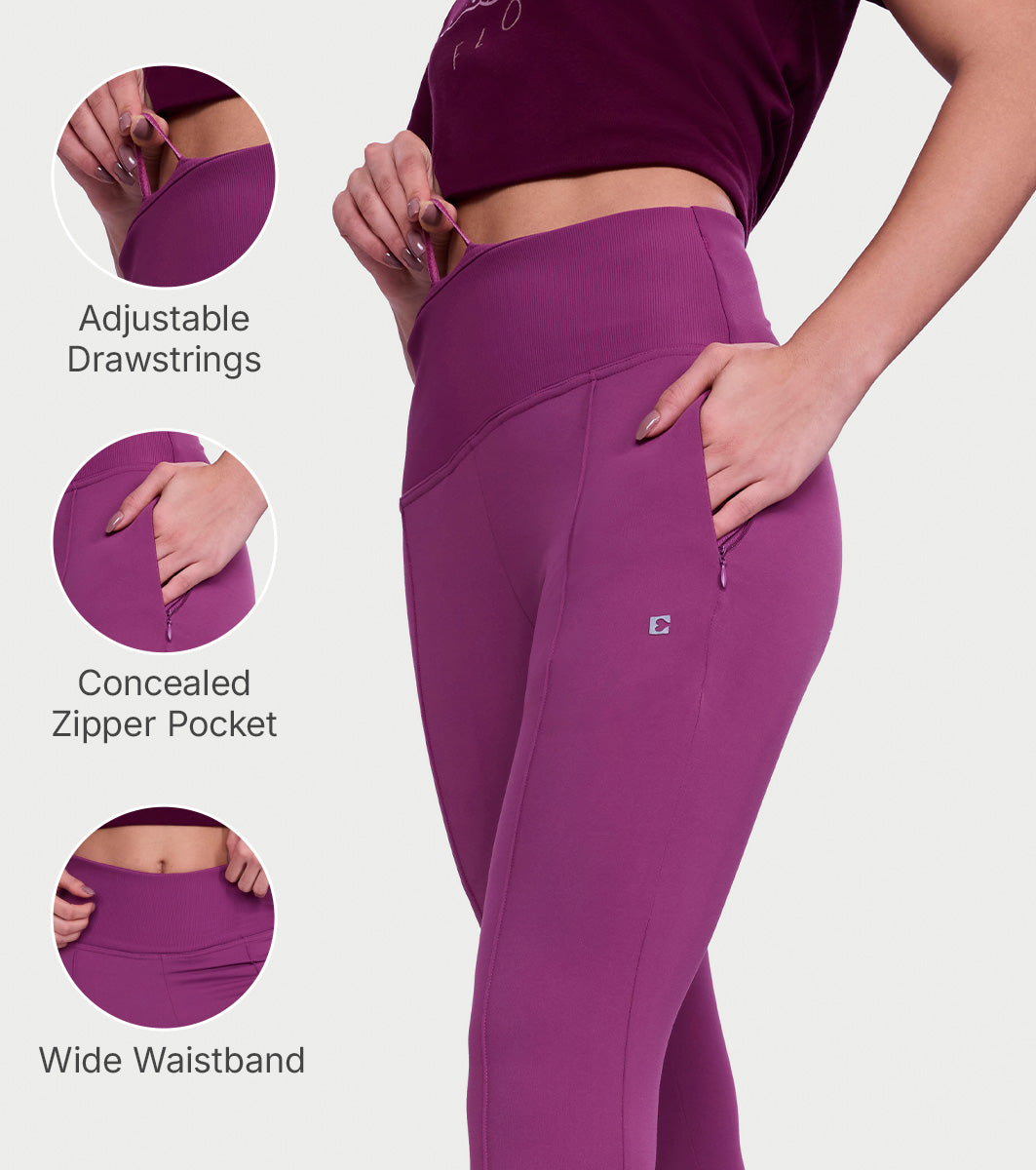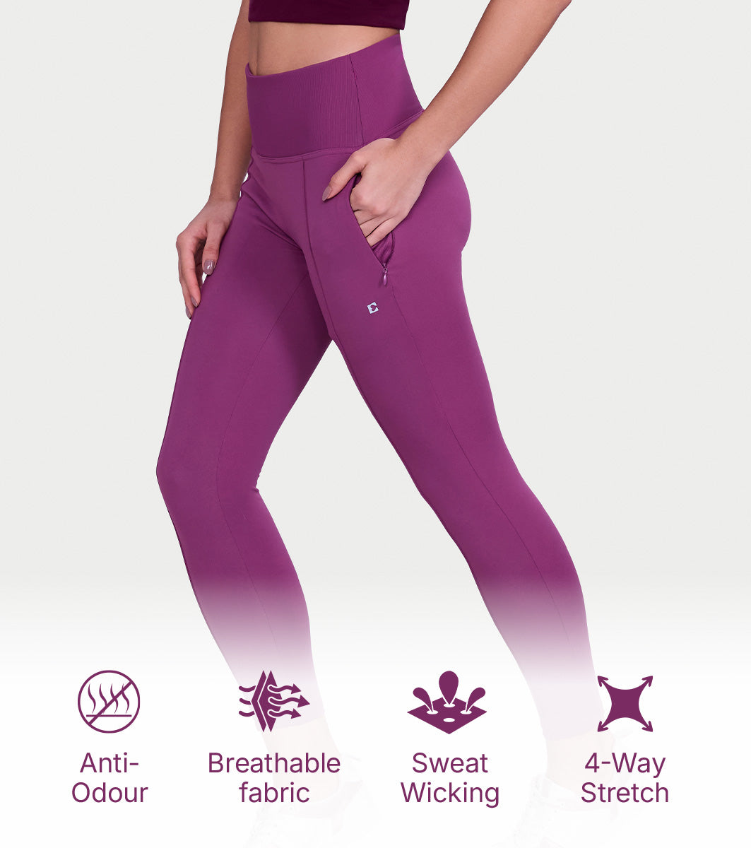 Enamor Versatile Tummy Grip Leggings – Butter-soft, high-rise, 4-way stretch comfort -A612 (Damson)