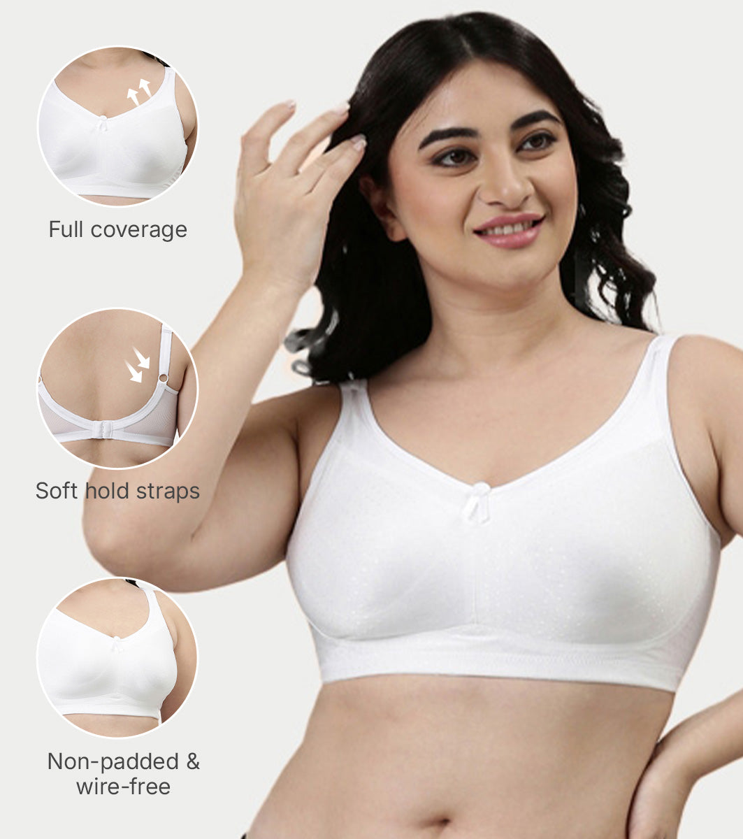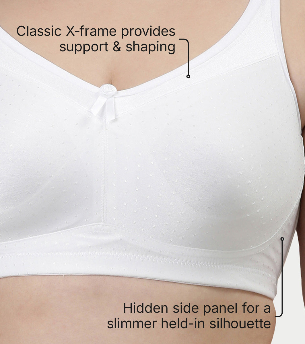 Enamor Hidden X-Frame and Smoothening Women's Full Support Everyday Bra - Jiggle control, Non Padded, Wirefree, Full Coverage - FB12 (Available in Plus sizes) (White)
