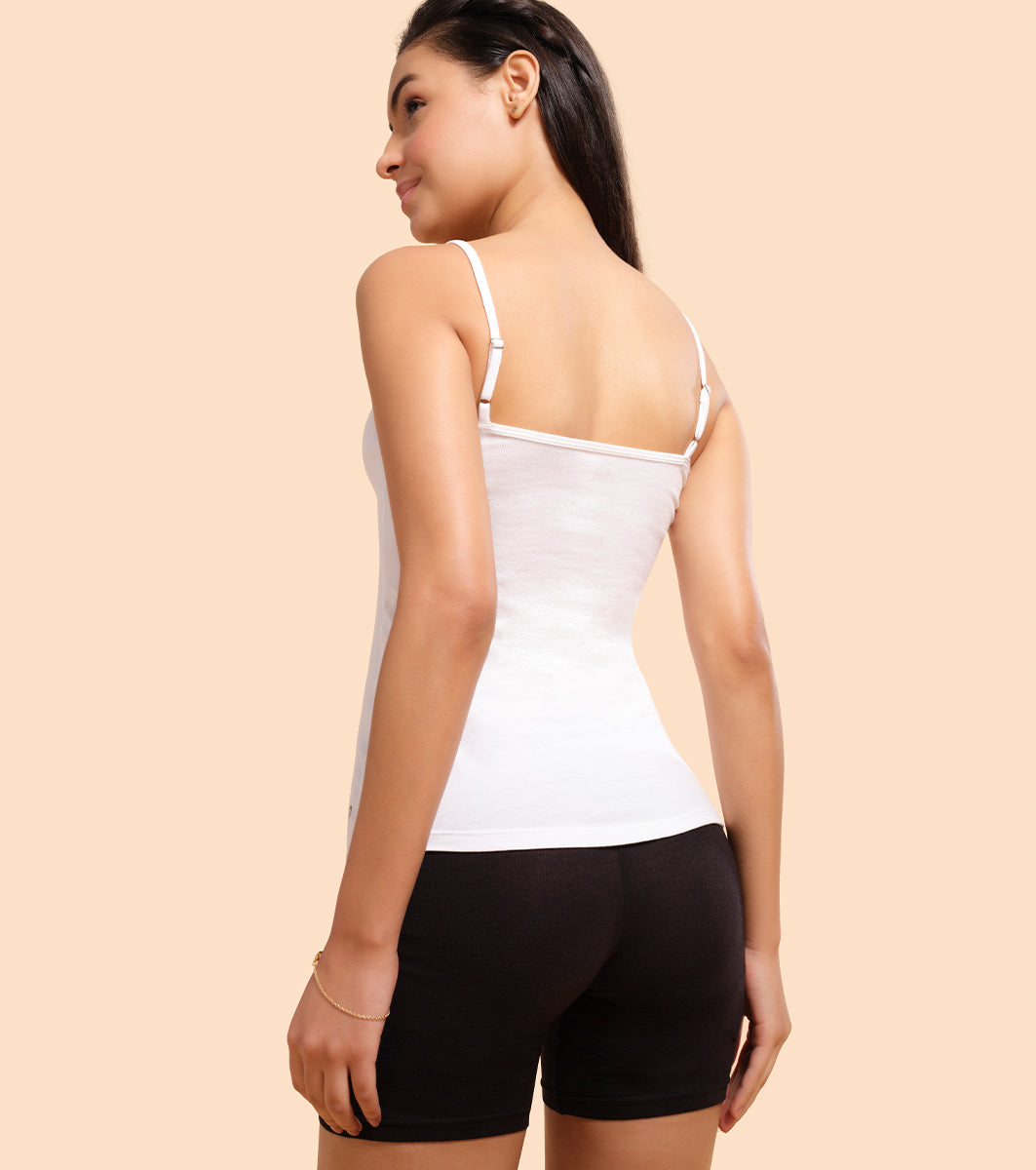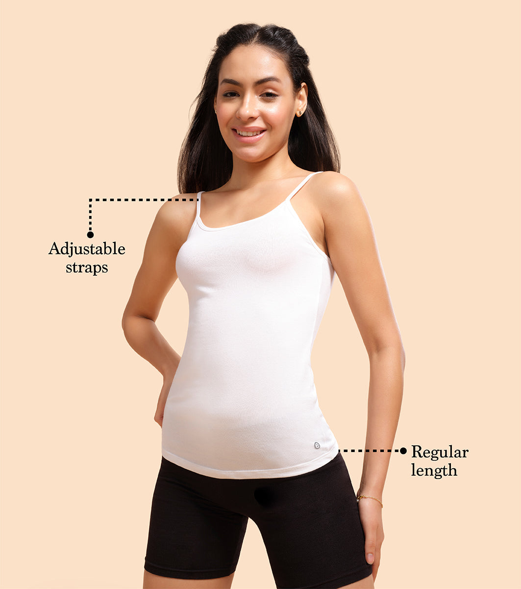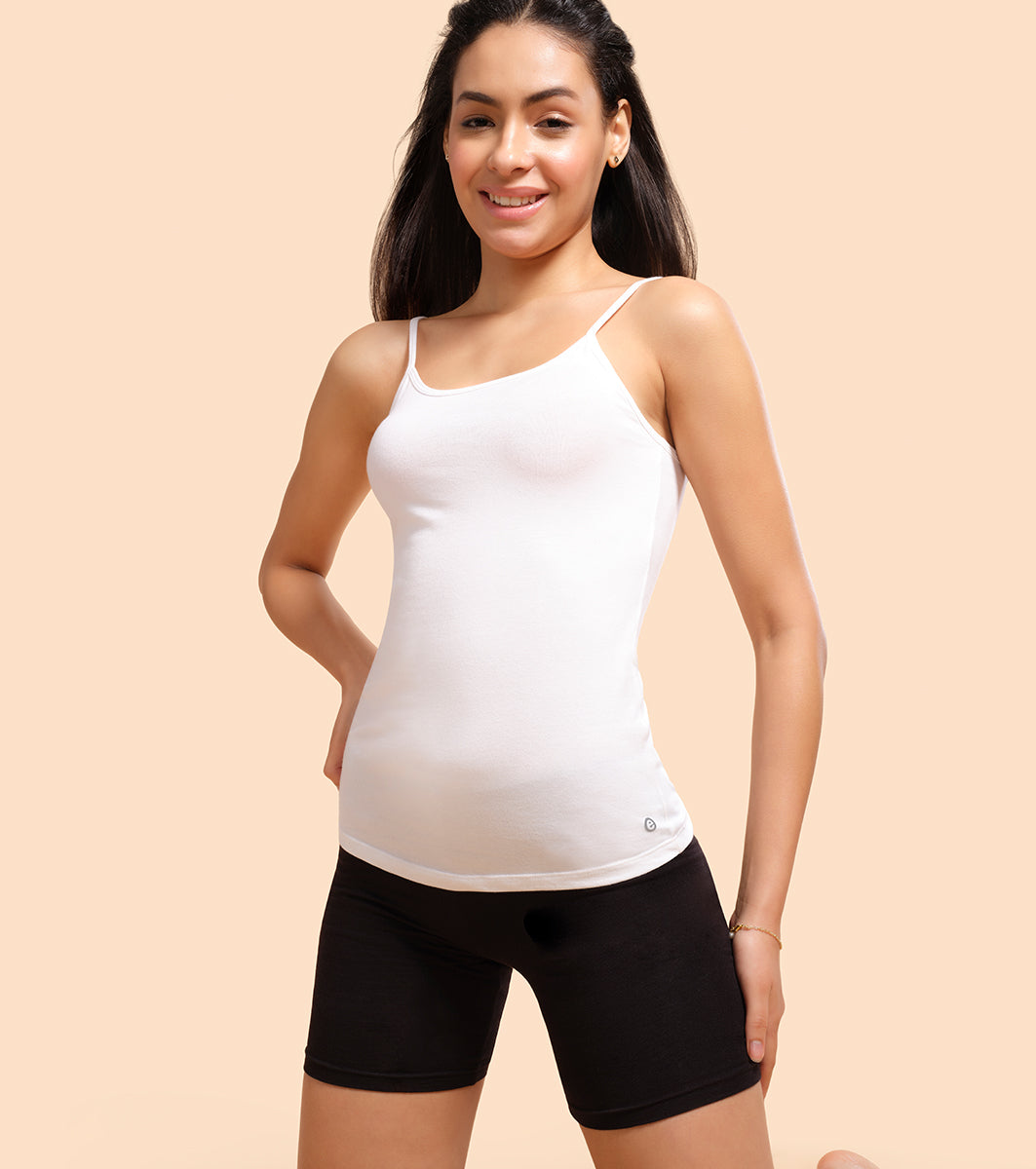 Enamor Sleeveless Scoop Neck Regular Length Camisole For Women - Slim Fit, Soft Stretch Cotton - E001 (White)