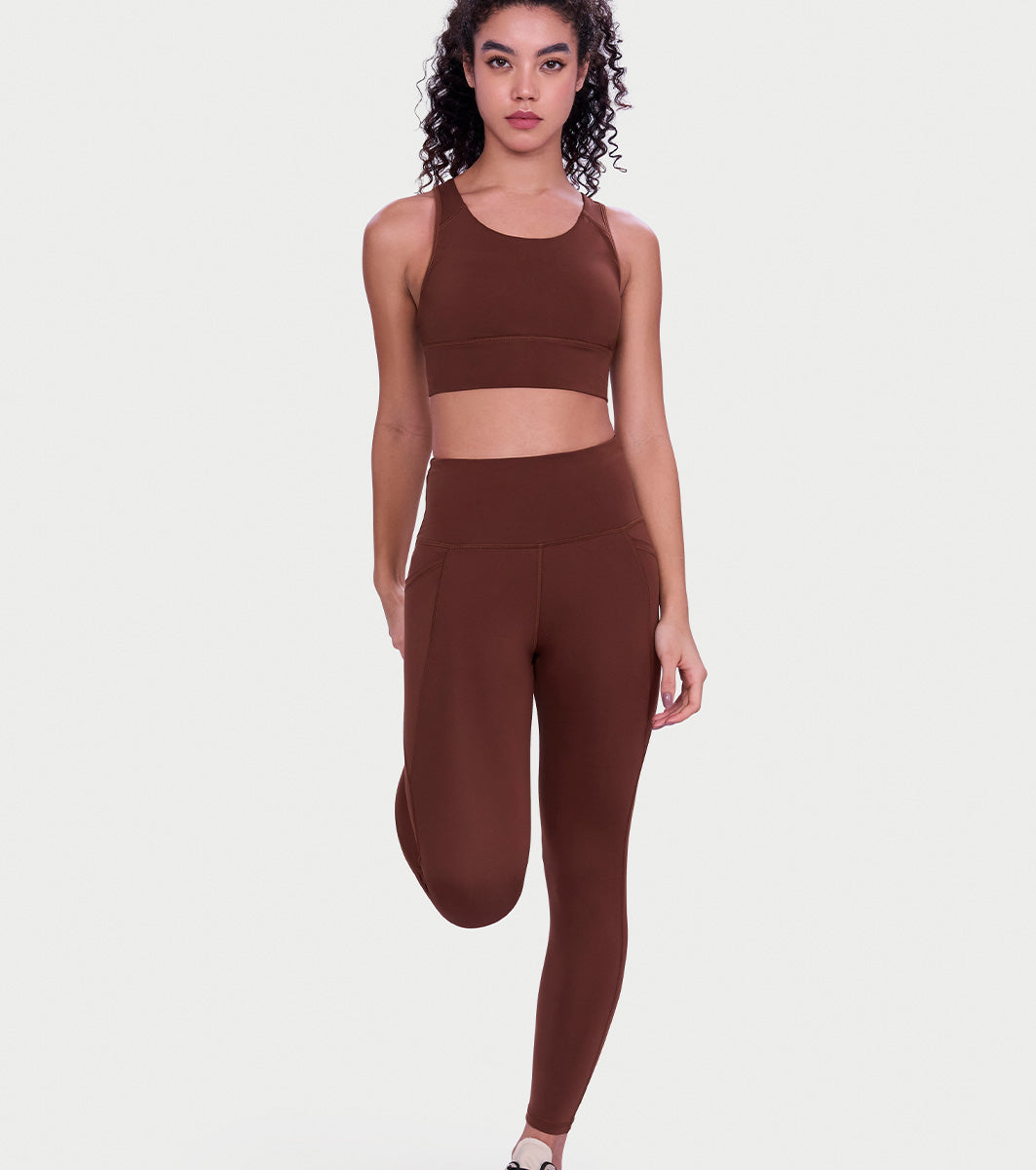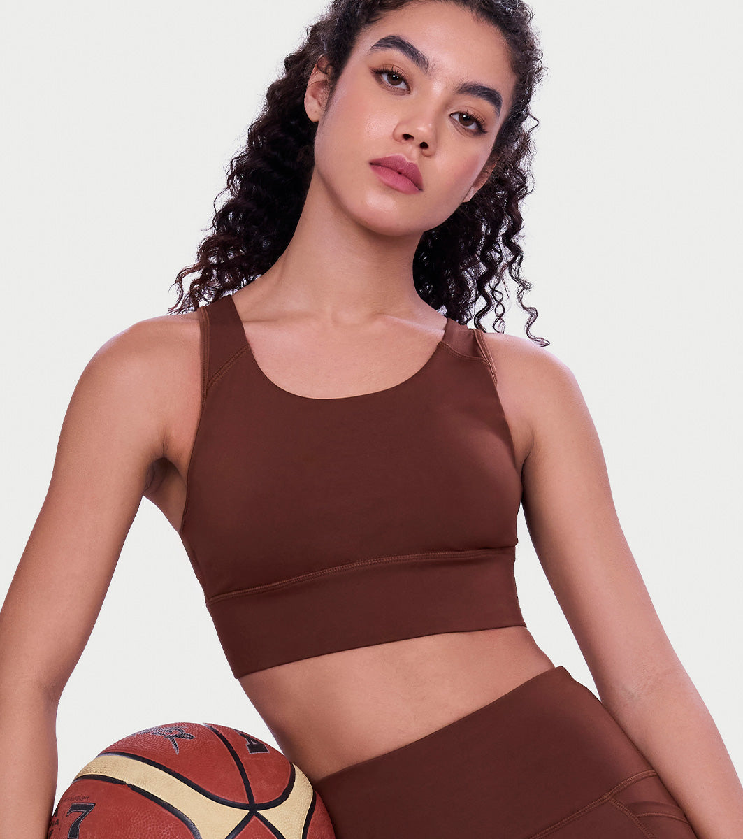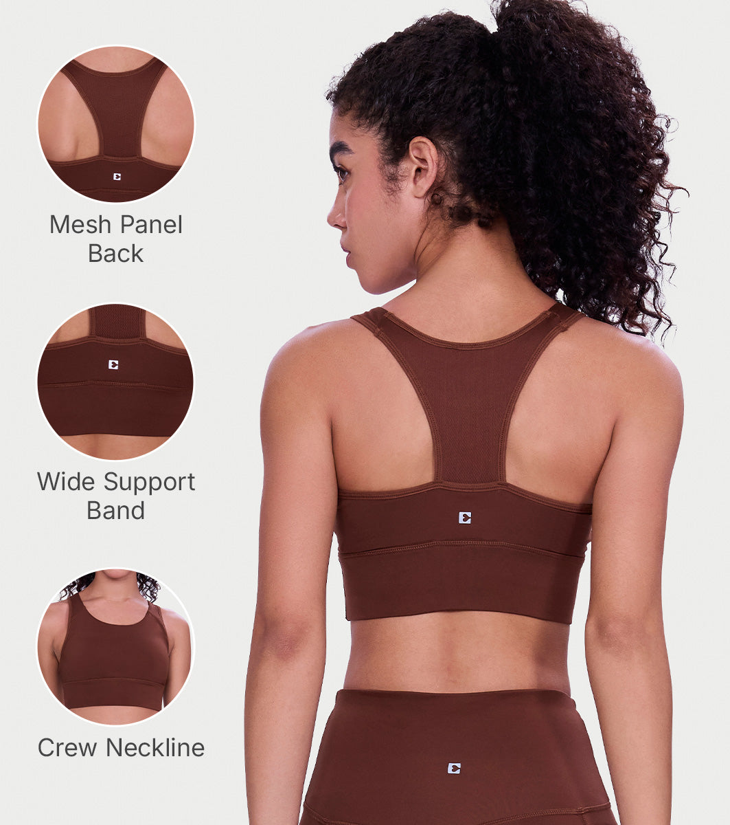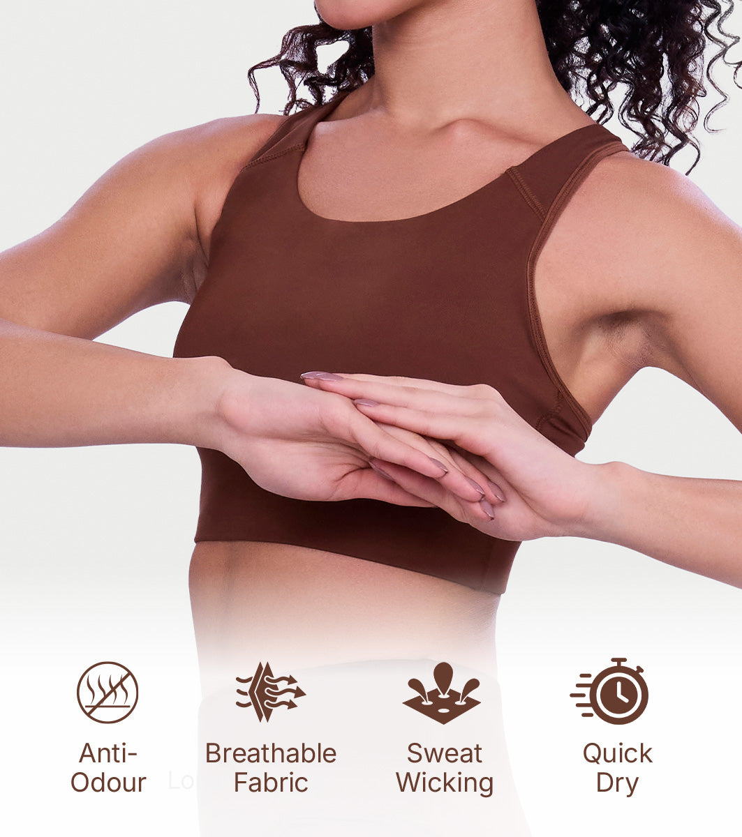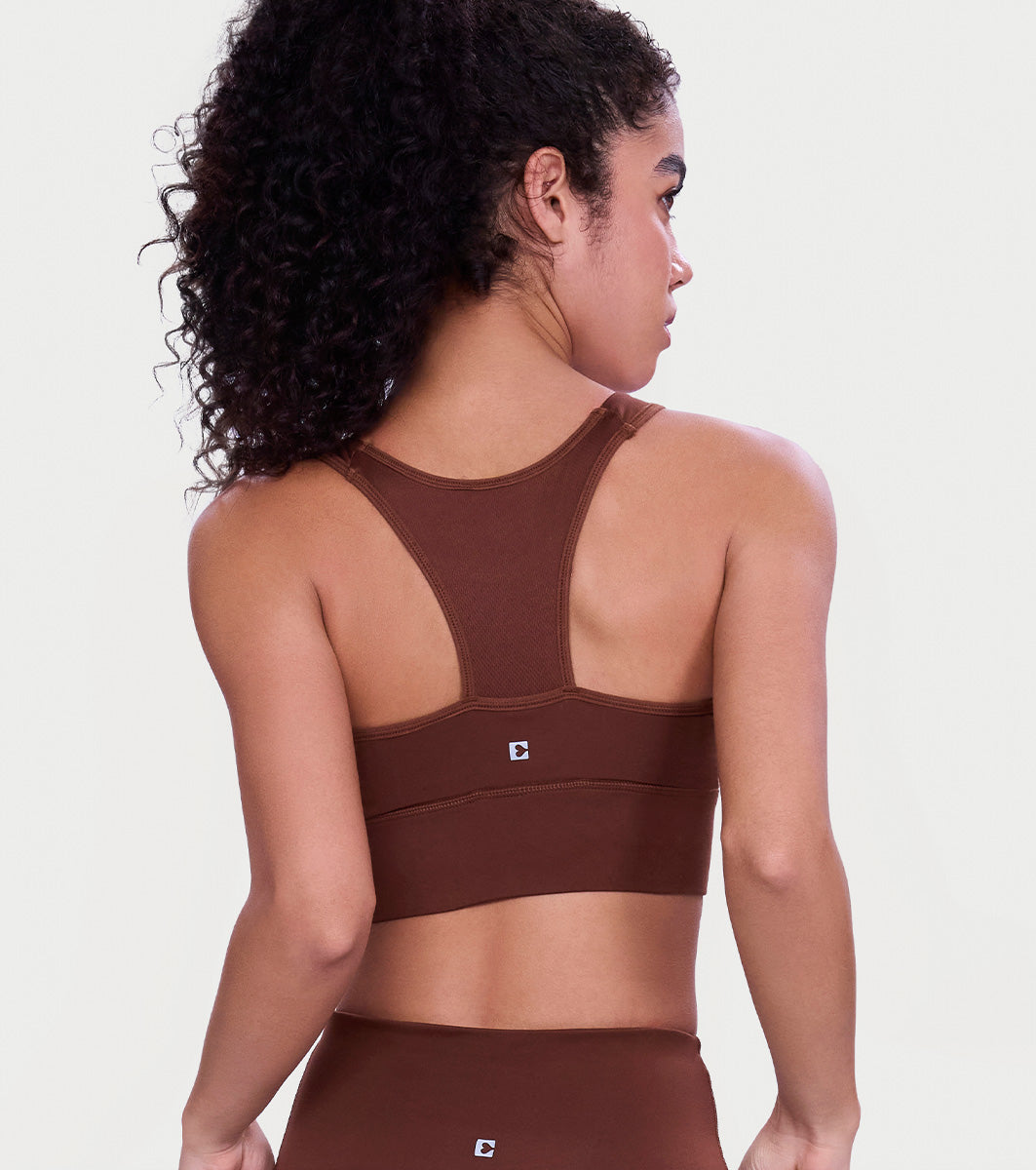 Enamor Wide Straps Seamed T-back Basic Workout Sports Bra - Quick Dry, Antimicrobial, Removable Padding, Non-Wired, Full Coverage - A202 (Sepia)