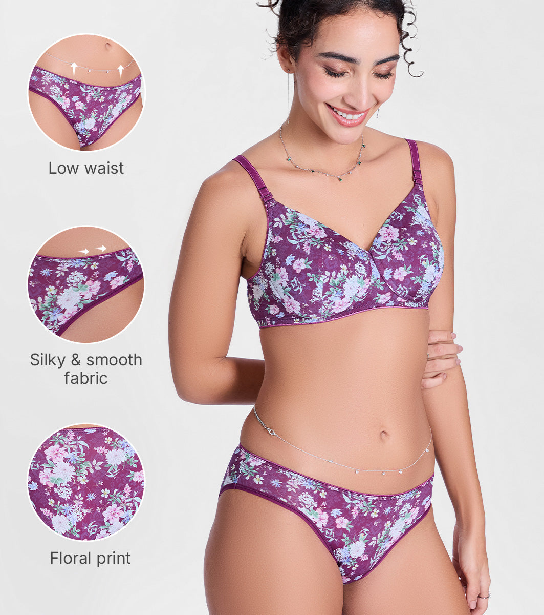 Enamor Womens Low Waist Co-ordinate Bikini Panty - P165 (Damask Plum Print)