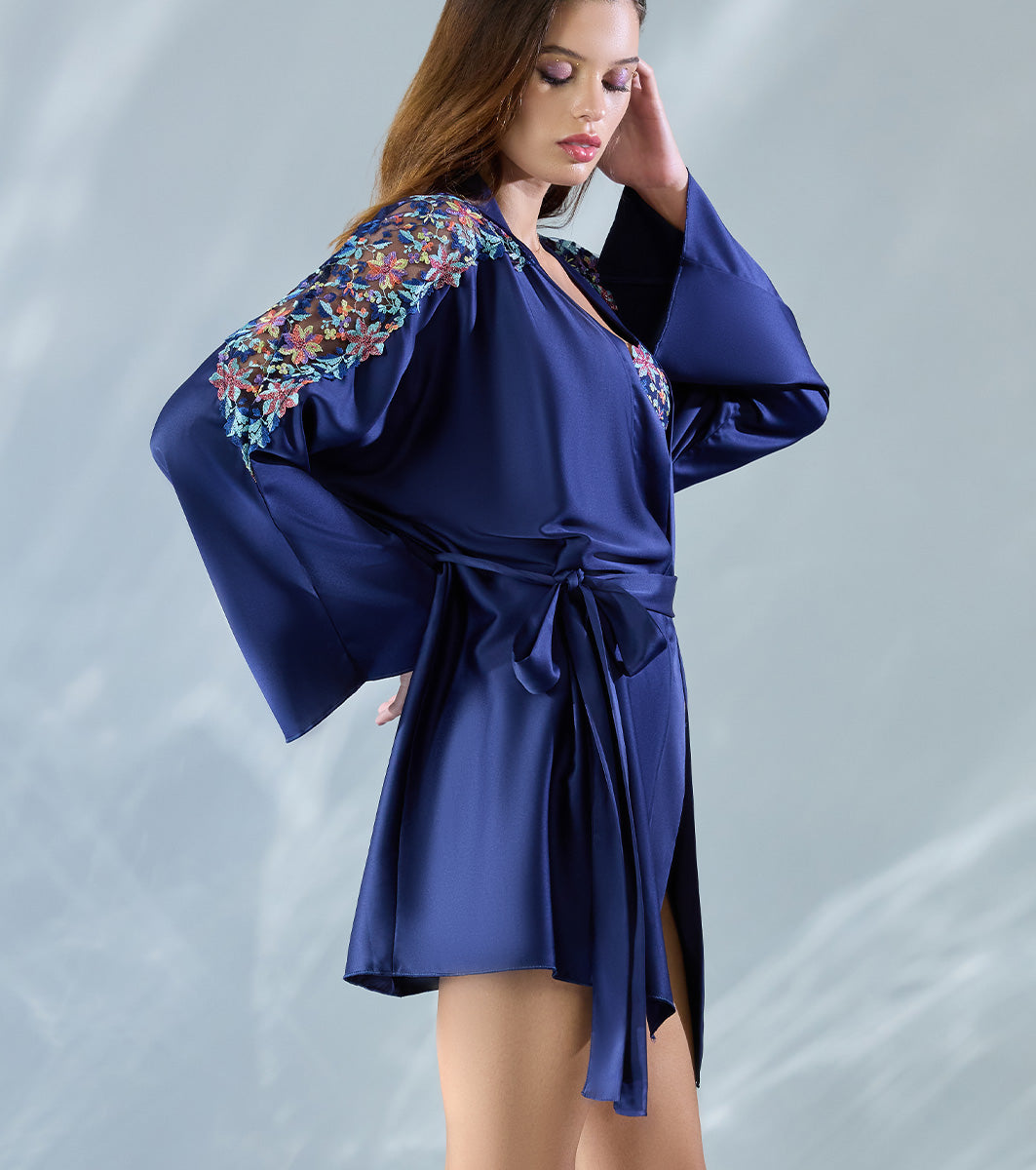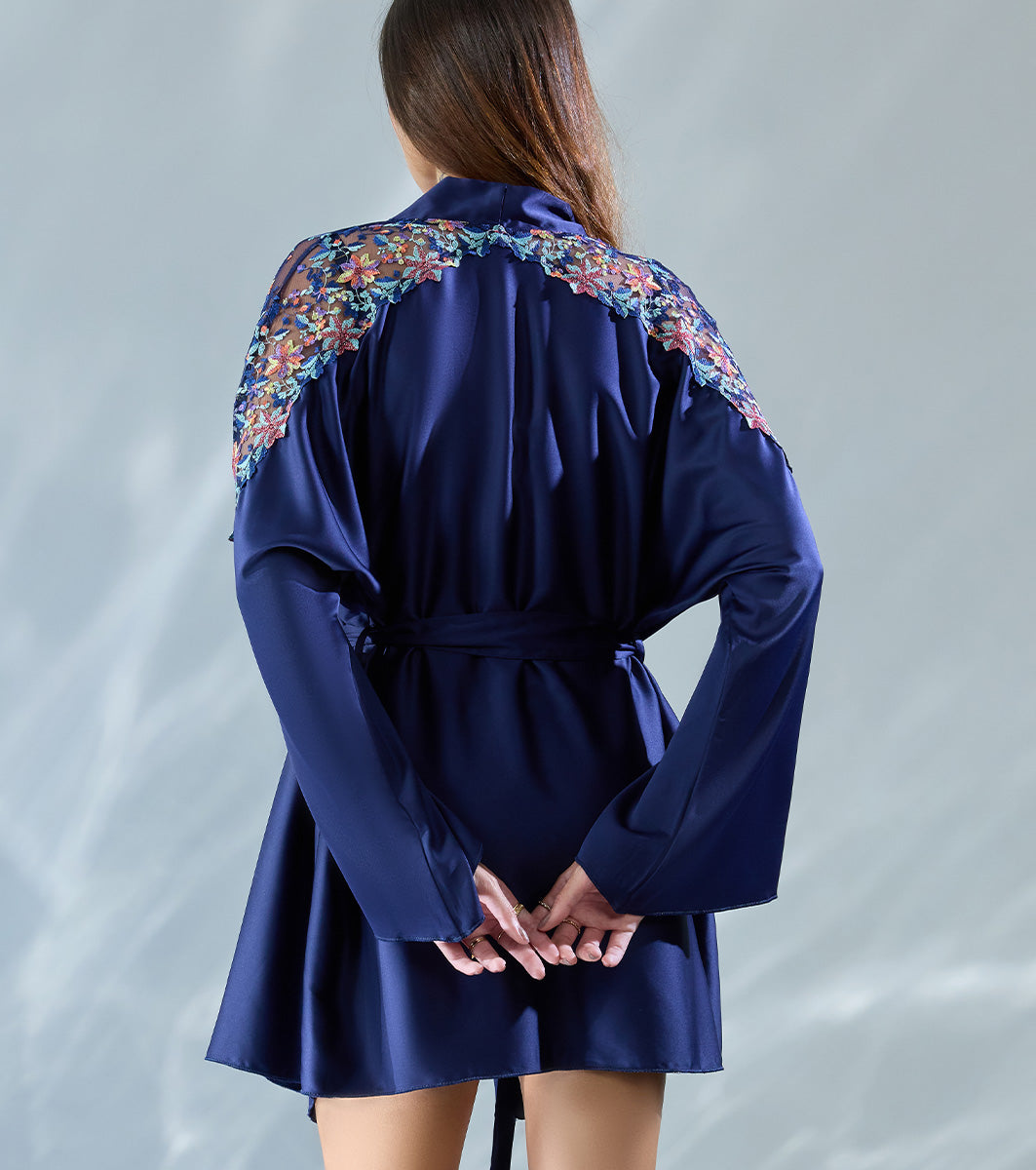 Enamor × Papa Don’t Preach - The Cosmic Crush Luxury Robe for Women - Mid-Thigh Length - DR02 (Astral Blue)