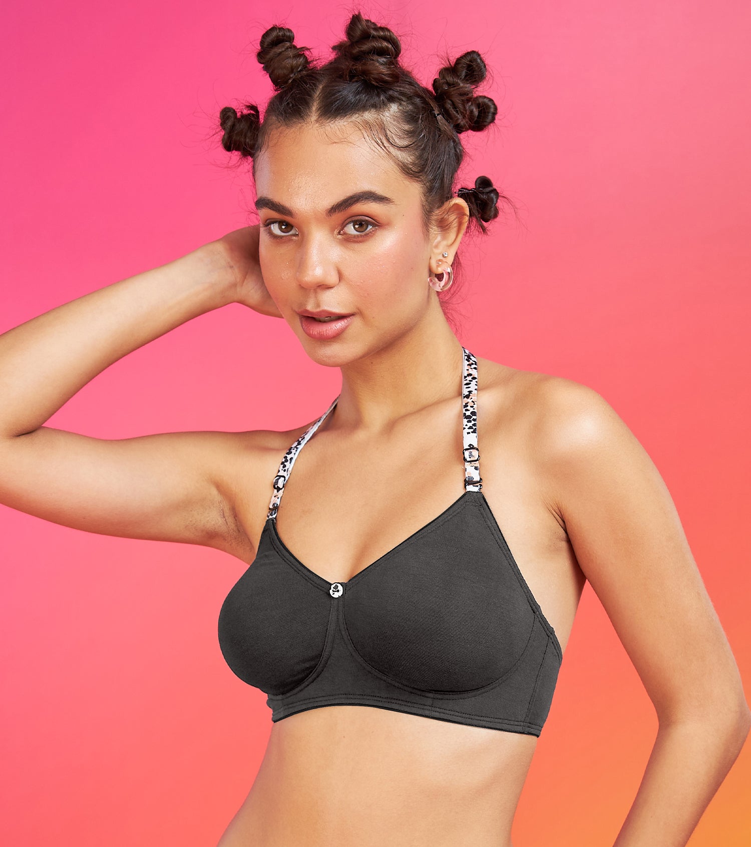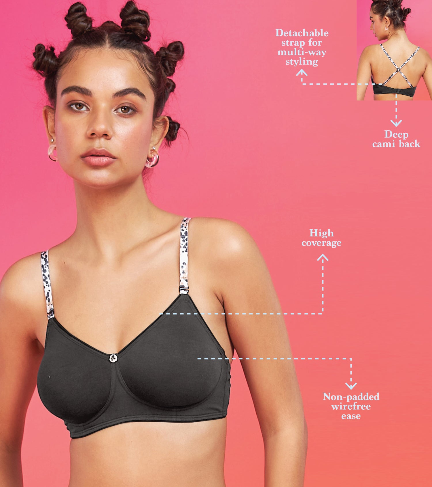 - Super comfy, wire-free, cotton t-shirt bra with light lining for all-day chill vibes