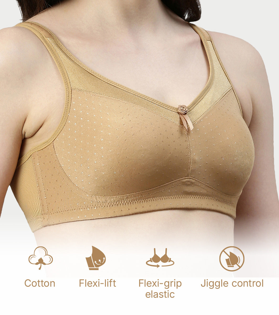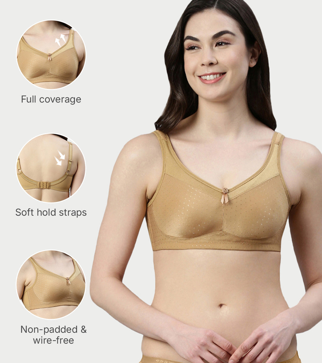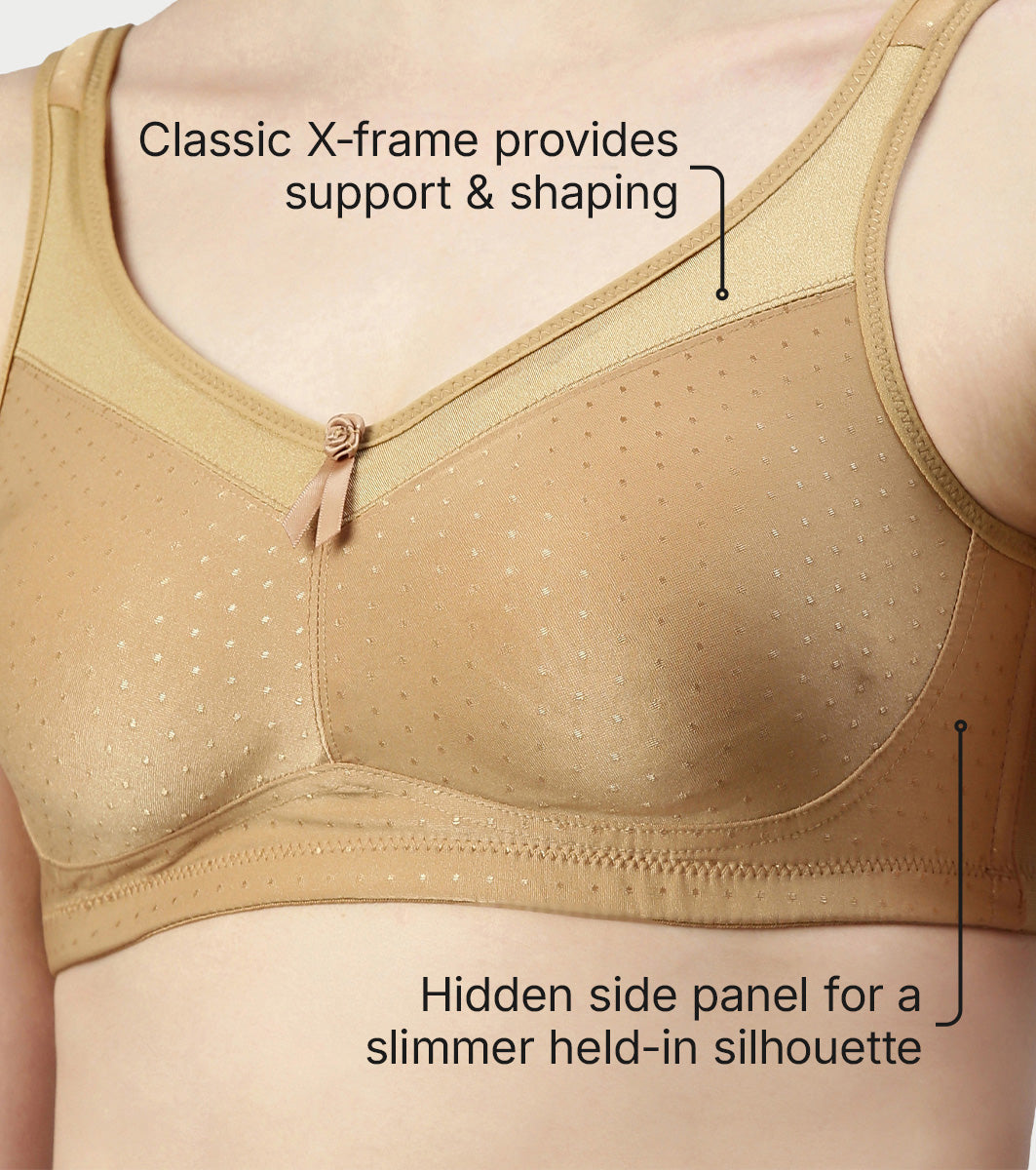 Enamor Hidden X-Frame and Smoothening Women's Full Support Everyday Bra - Jiggle control, Non Padded, Wirefree, Full Coverage - FB12 (Available in Plus sizes) (Buff)