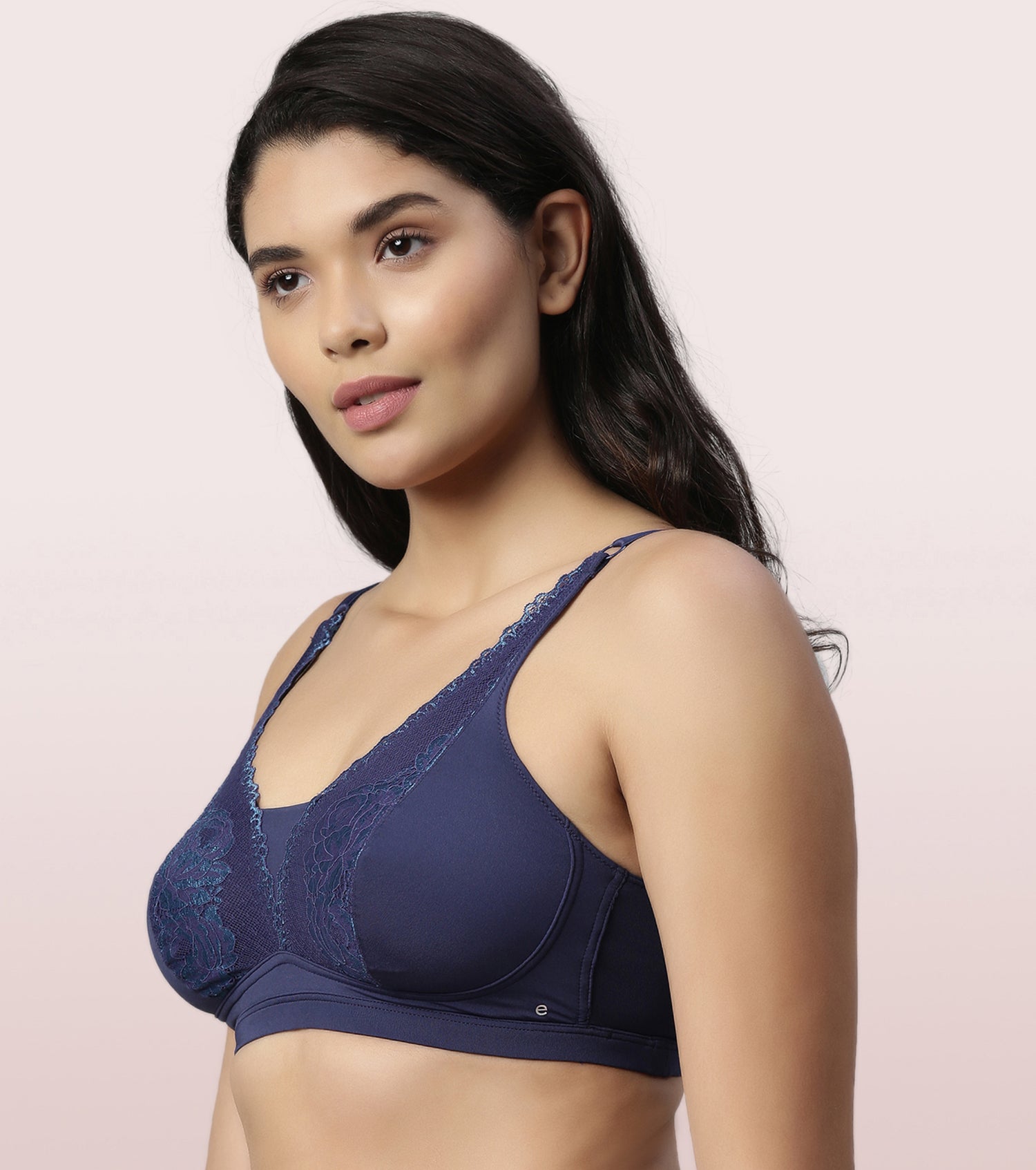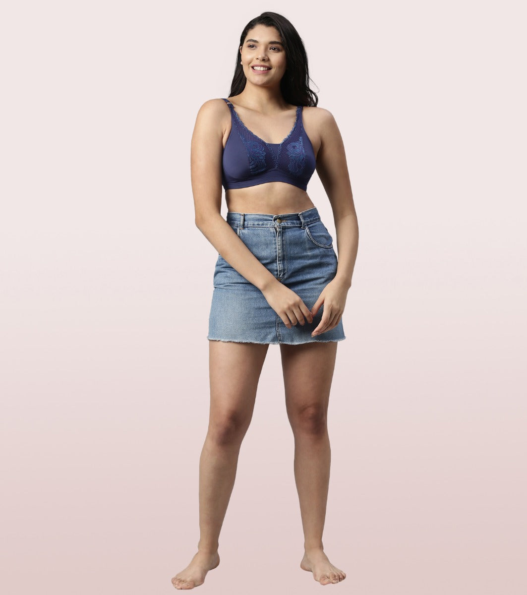 Enamor Elongated Neckline, Cami back Women's Everyday Fashion Plunge Lace Bralette - Non Padded, Wirefree, High-Coverage - F071