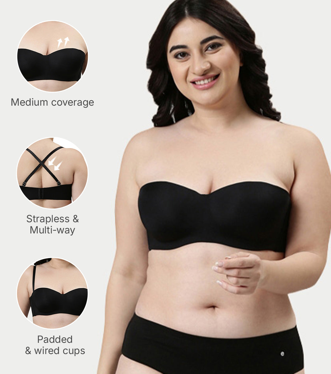 Enamor Strapless Multiway Styling Women's T-Shirt Bra - Padded, Wired, Medium Coverage - F074 (Available in Plus Sizes) (Black)