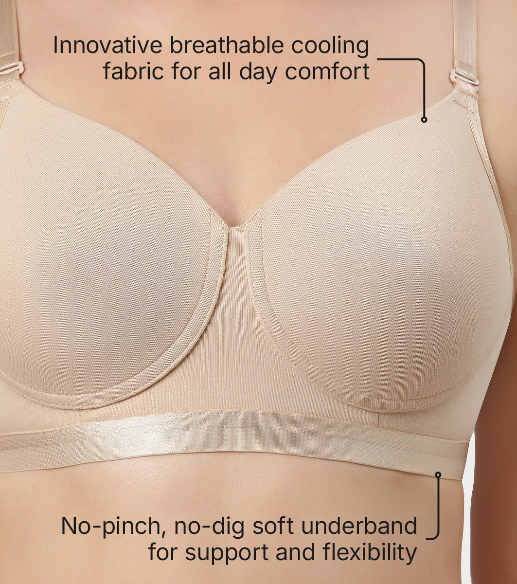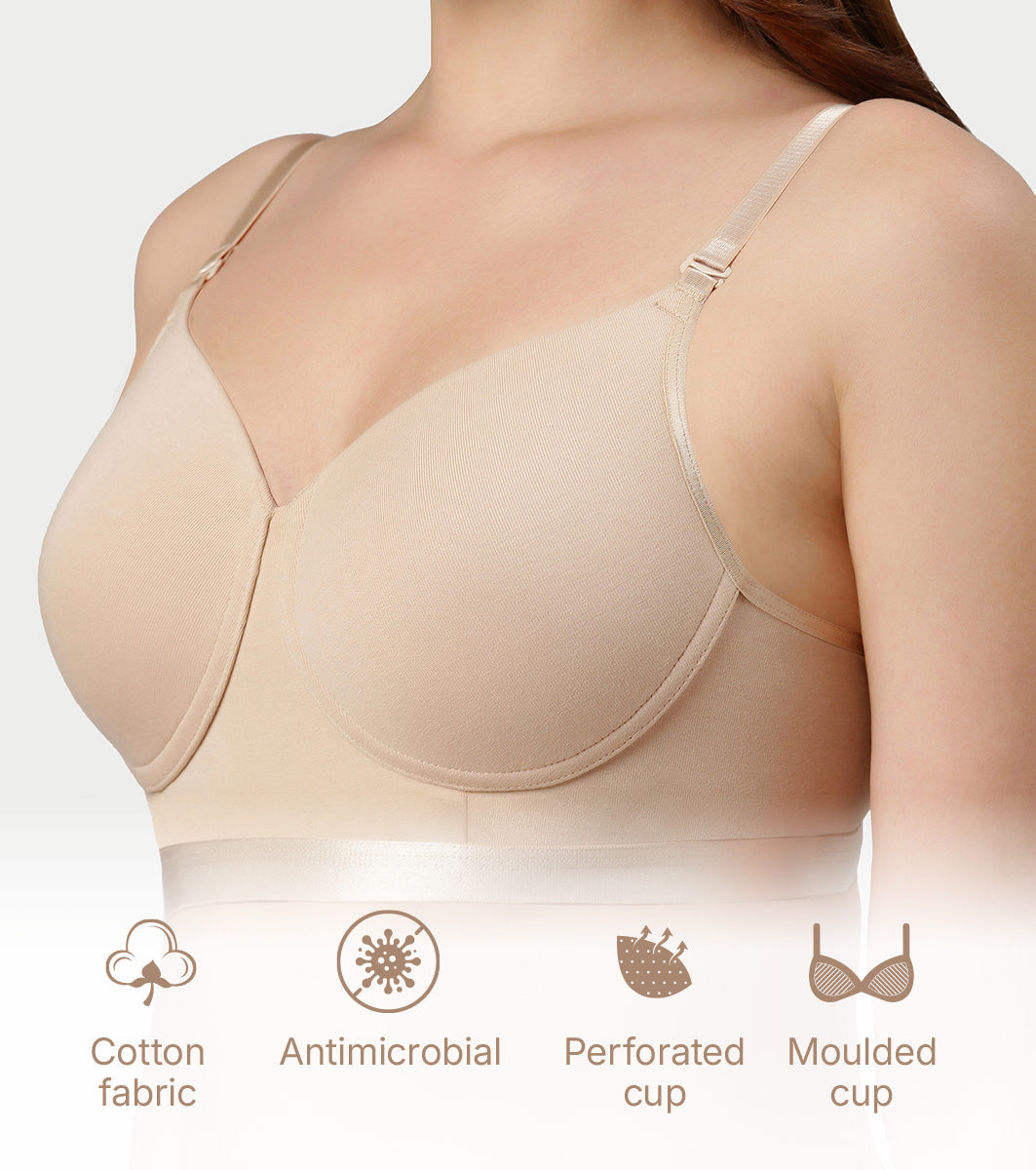 Enamor Innovations Fabcool Breathable Cup Women's T-Shirt Bra - Antimicrobial Comfort, Perforated Cups Padded, Wirefree, High Coverage - A165 (Pale Skin)